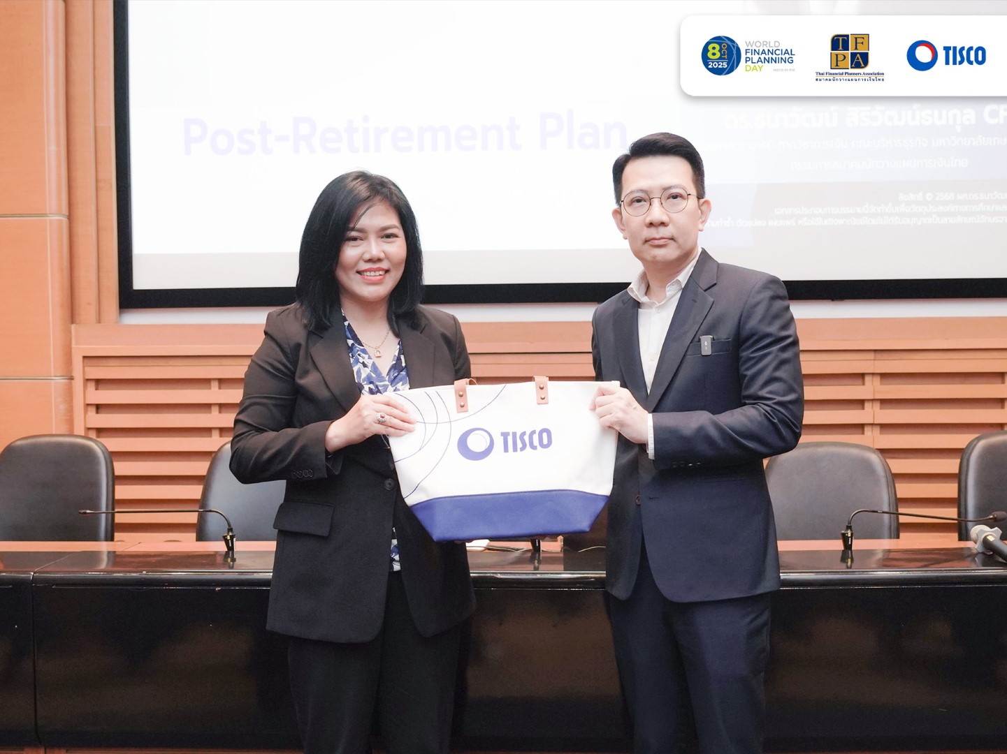 ธนาคารทิสโก้ จำกัด (มหาชน) เดินหน้ายกระดับเจ้าหน้าที่ดูแลลูกค้า จัดโครงการ The Advisor Club โดยร่วมมือกับ สมาคมนักวางแผนการเงินไทย (TFPA) เสริมความรู้เชิงลึกให้แก่พนักงานที่ได้รับคุณวุฒิที่ปรึกษาการเงิน AFPT™ และนักวางแผนการเงิน CFP® ในหัวข้อ “Post-Retirement Plan" เจาะลึกแนวทางการวางแผนการเงินสำหรับหลังเกษียณอายุ โดยได้รับเกียรติจาก ผศ.ดร.ธนาวัฒน์ สิริวัฒน์ธนกุล CFP® กรรมการสมาคมนักวางแผนการเงินไทย และอาจารย์ประจำภาควิชาการเงินคณะบริหารธุรกิจ มหาวิทยาลัยเกษตรศาสตร์ (ที่หนึ่งจากซ้าย) บรรยายให้ความรู้ และนายธีรนาถ รุจิเมธาภาส ผู้ช่วยกรรมการผู้จัดการใหญ่อาวุโส บริษัท ทิสโก้ไฟแนนเชียลกรุ๊ป จำกัด (มหาชน) (ที่สองจากซ้าย) ให้การต้อนรับ