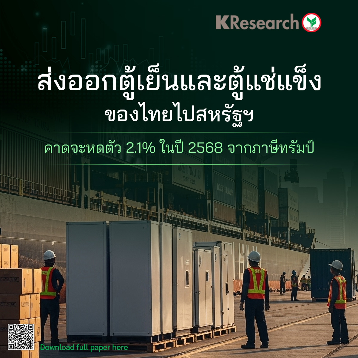 โดยสรุป ศูนย์วิจัยกสิกรไทย ประเมินว่า มูลค่าส่งออกตู้เย็นและตู้แช่แข็งไทยไปสหรัฐฯ ในปี 2568 จะหดตัวเพียง 2.1% หรือราว 714 ล้านดอลลาร์ฯ เนื่องจากผู้ประกอบการเร่งส่งออกก่อนถึงกำหนดเริ่มเก็บภาษีตั้งแต่ 1 สิงหาคม 2568 ทว่าหลังภาษี Reciprocal 19% มีผลบังคับใช้ คาดว่าการส่งออกจะหดตัว 16% ในช่วงที่เหลือของปี