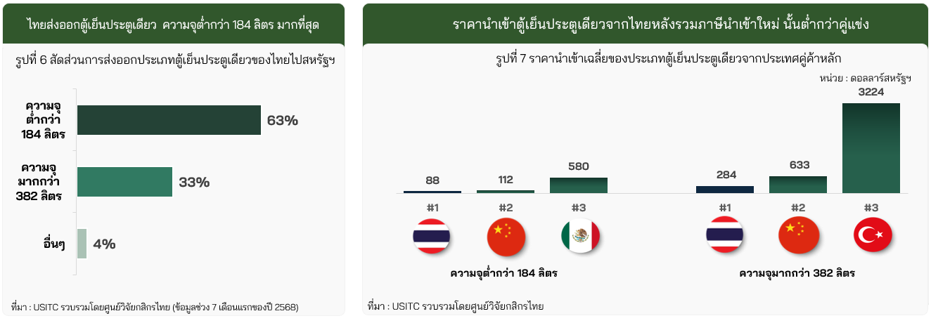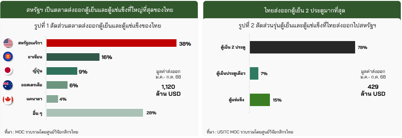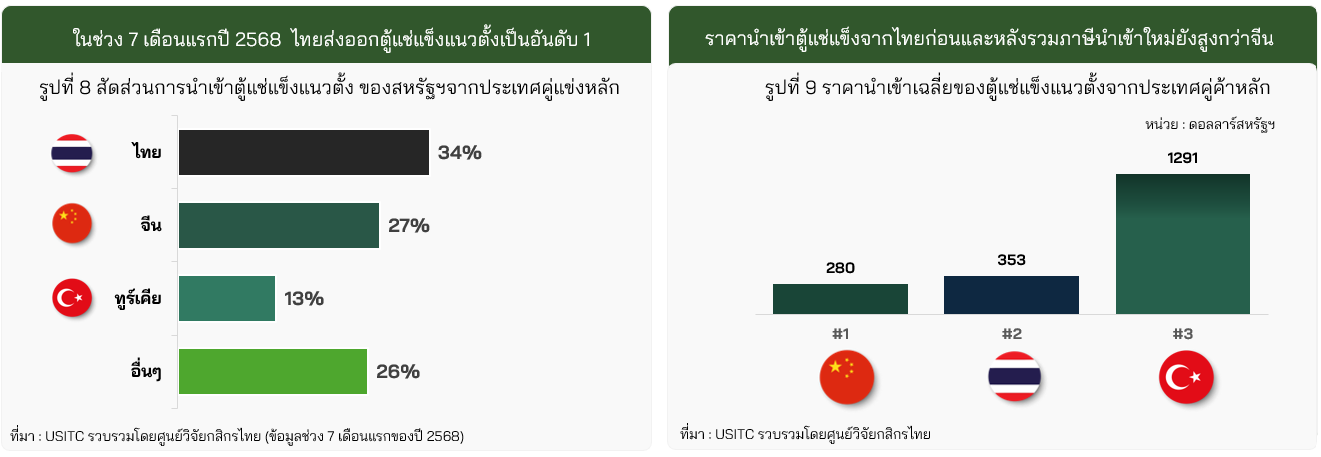 การที่สหรัฐฯ เรียกเก็บภาษีนำเข้าแบบตอบโต้ (Reciprocal Tariff) จากไทยในอัตรา 19% รวมถึงภาษีส่วนประกอบเหล็กในอัตรา 50% ภายใต้ Section 232 ส่งผลให้ต้นทุนการส่งออกตู้เย็นและตู้แช่แข็งไปสหรัฐฯ เพิ่มขึ้น