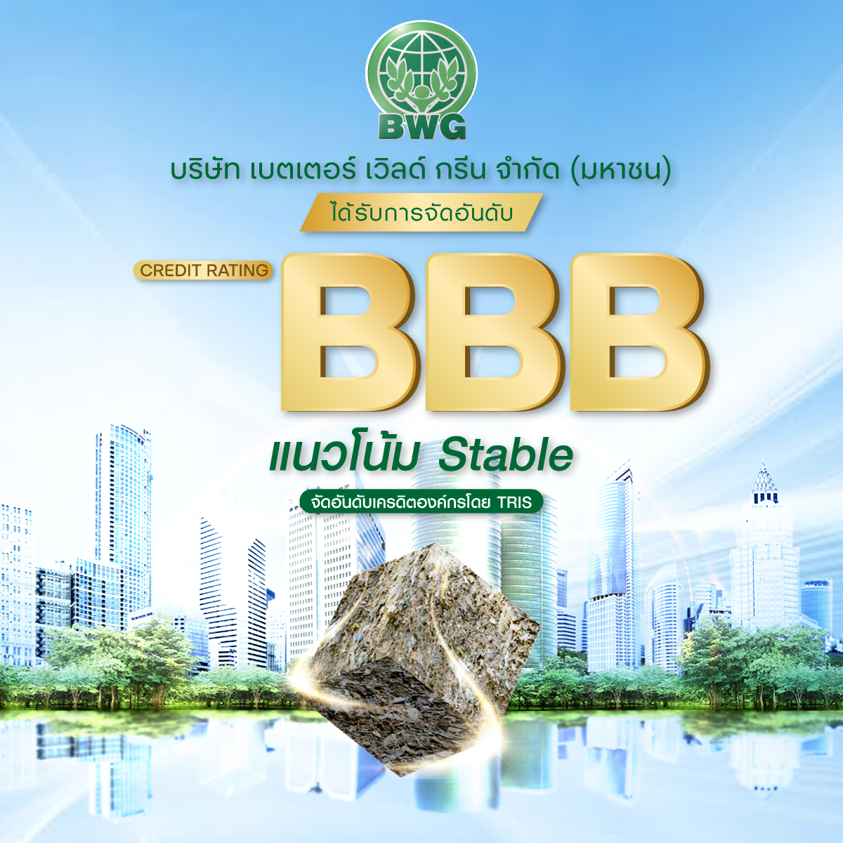 บริษัท เบตเตอร์ เวิลด์ กรีน จำกัด (มหาชน) หรือ BWG ได้รับการปรับเพิ่มอันดับความน่าเชื่อถือขององค์กรขึ้นถึง 2 ระดับในครั้งเดียว จากระดับ ‘BB+’ เป็น ‘BBB’ พร้อมให้แนวโน้มอันดับเครดิต “คงที่” (Stable) จากบริษัท ทริสเรทติ้ง จำกัด การปรับอันดับเครดิตครั้งนี้ เกิดจากสภาพการเงินที่มีความแข็งแรง สภาพคล่องสูง หนี้สินลดต่ำลงอย่างมีนัยสำคัญ เสริมสร้างสถานะผู้นำในธุรกิจการบริหารจัดการกากอุตสาหกรรมเพื่อความยั่งยืน ซึ่งสะท้อนถึงความสำเร็จอย่างเป็นรูปธรรมจากกลยุทธ์การบริหารงานที่เฉียบคม