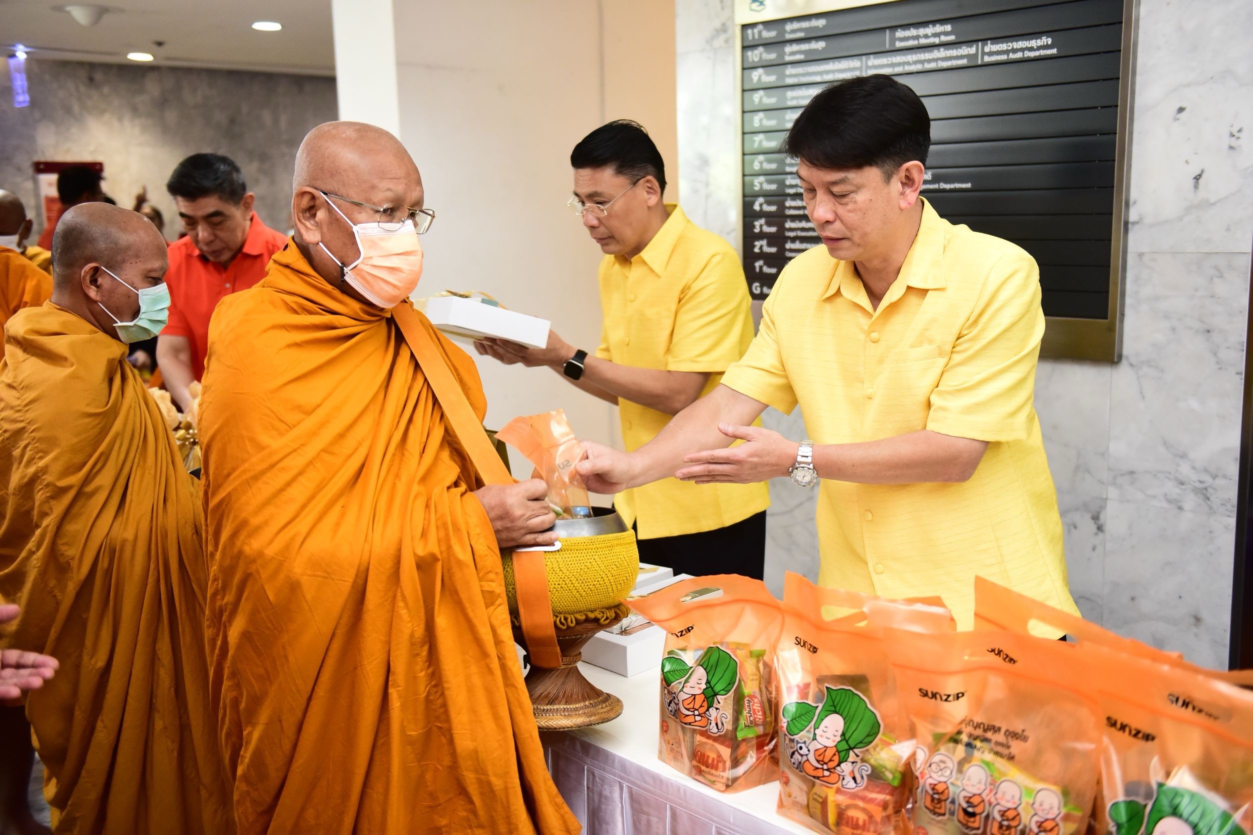 นายกมลภพ วีระพละ กรรมการผู้จัดการธนาคารอาคารสงเคราะห์ (ธอส.) พร้อมด้วยผู้บริหารและพนักงานธนาคาร ร่วมพิธีทำบุญตักบาตรถวายเป็นพระราชกุศล แด่พระบาทสมเด็จพระบรมชนกาธิเบศร มหาภูมิพลอดุลยเดชมหาราช บรมนาถบพิตร พระมหากษัตริย์รัชกาลที่ 9 แห่งราชวงศ์จักรี เนื่องในวันนวมินทรมหาราช วันคล้ายวันสวรรคต วันที่ 13 ตุลาคม เพื่อน้อมรำลึกในพระมหากรุณาธิคุณเป็นล้นพ้นอันหาที่สุดมิได้ โดยมีพระครูสมุห์เดือน ปุญญจาโร ดร. เจ้าอาวาสวัดโบสถ์วรดิตถ์ จังหวัดอ่างทอง นำพระภิกษุ และสามเณร รวม 29 รูป ออกรับบิณฑบาต ทั้งนี้ พิธีดังกล่าวจัดขึ้น ณ ธนาคารอาคารสงเคราะห์ สำนักงานใหญ่ เมื่อวันที่ 9 ตุลาคม 2568