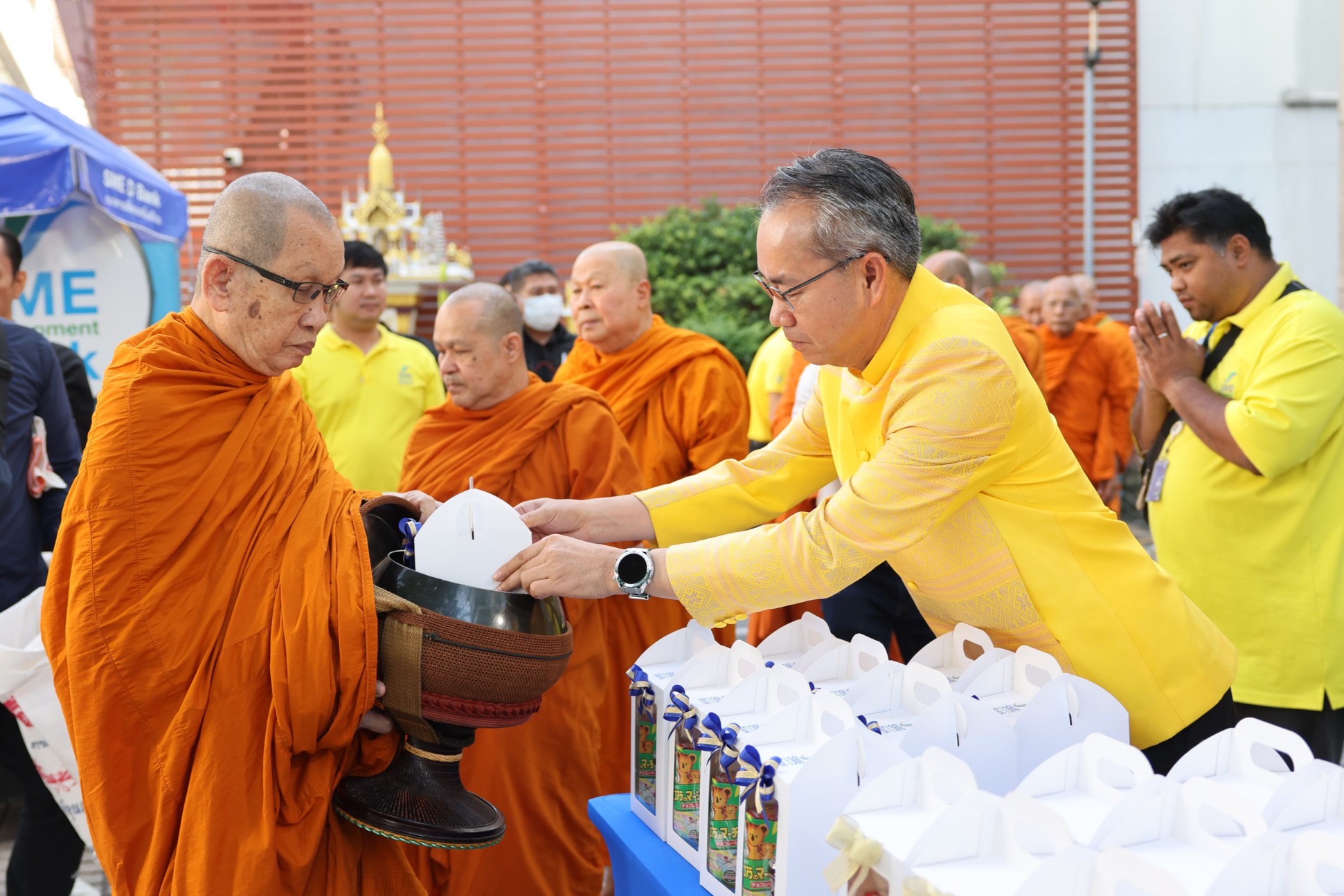ธนาคารพัฒนาวิสาหกิจขนาดกลางและขนาดย่อมแห่งประเทศไทย (ธพว.) หรือ SME D Bank โดย นายพิชิต มิทราวงศ์ กรรมการผู้จัดการ พร้อมด้วยคณะผู้บริหารและเจ้าหน้าที่ ร่วมพิธีทำบุญตักบาตรถวายเป็นพระราชกุศลแด่พระบาทสมเด็จพระบรมชนกาธิเบศร มหาภูมิพลอดุลยเดชมหาราช บรมนาถบพิตร พระมหากษัตริย์ รัชกาลที่ 9 แห่งราชวงศ์จักรี เนื่องในวันนวมินทรมหาราช วันคล้ายวันสวรรคต วันที่ 13 ตุลาคม และพิธีวางพานพุ่มถวายราชสดุดี เพื่อน้อมรำลึกในพระมหากรุณาธิคุณเป็นล้นพ้นอันหาที่สุดมิได้ ณ บริเวณชั้น 1 สำนักงานใหญ่ SME D Bank อาคาร SME Bank Tower เมื่อวันที่ 10 ตุลาคม 2568
