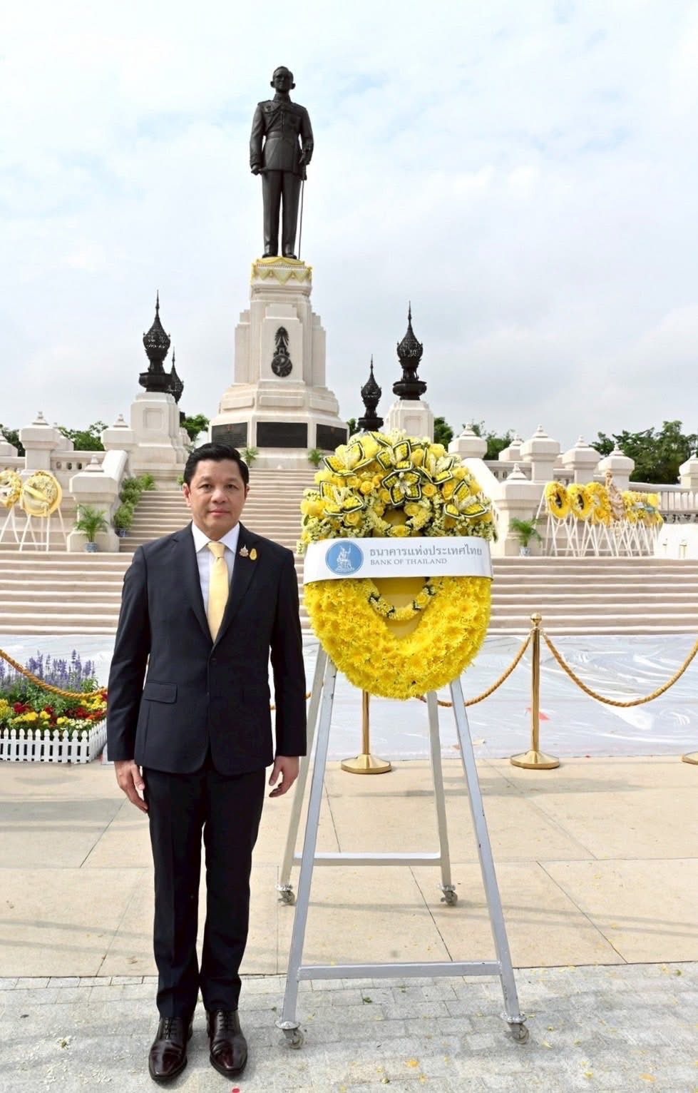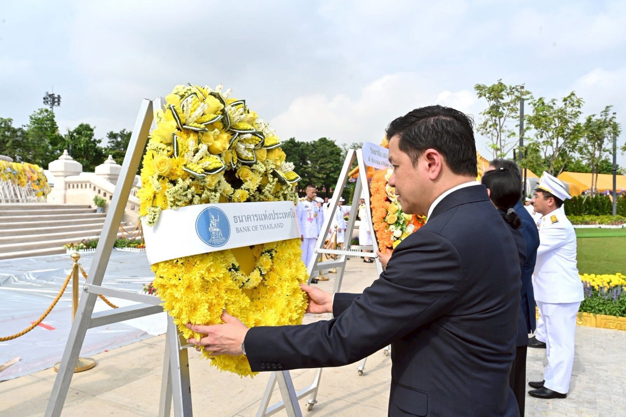 (13 ตุลาคม 2568) นายวิทัย รัตนากร ผู้ว่าการธนาคารแห่งประเทศไทย พร้อมด้วยคณะผู้บริหารและพนักงาน ร่วมพิธีวางพวงมาลาถวายบังคมพระบรมราชานุสาวรีย์ พระบาทสมเด็จพระบรมชนกาธิเบศร มหาภูมิพลอดุลยเดชมหาราช บรมนาถบพิตร เนื่องใน “วันนวมินทรมหาราช” พุทธศักราช 2568 เพื่อน้อมรำลึกถึงพระมหากรุณาธิคุณ ณ อุทยานเฉลิมพระเกียรติพระบาทสมเด็จพระบรมชนกาธิเบศร มหาภูมิพลอดุลยเดชมหาราช บรมนาถบพิตร