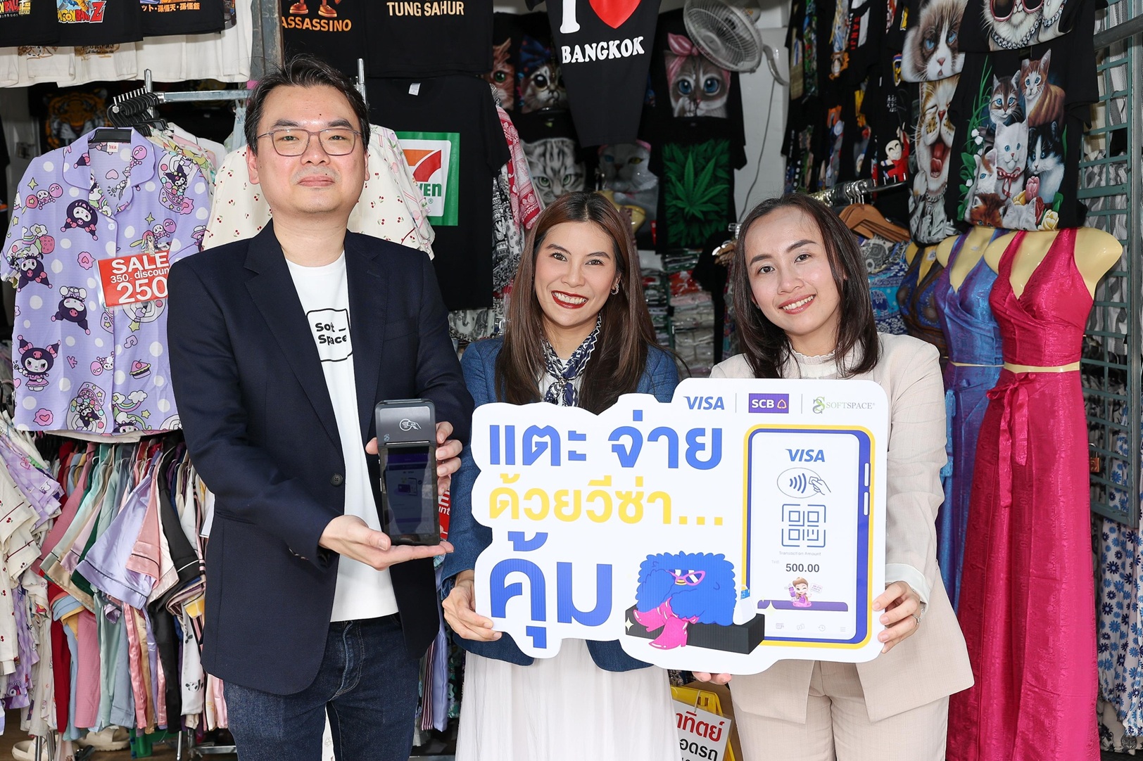 วีซ่า ผู้นำการให้บริการการชำระเงินดิจิทัลระดับโลกจับมือกับ ธนาคารไทยพาณิชย์ จำกัด (มหาชน) (SCB) และ Soft Space ฟินเทคชั้นนำ เดินหน้าขยายบริการ Tap to Pay ในย่านชอปปิงชื่อดังและคึกคักที่สุดของกรุงเทพมหานคร อย่าง ตลาดนัดจตุจักร และ ตลาดประตูน้ำ ความร่วมมือเชิงกลยุทธ์ครั้งนี้ มีเป้าหมายเพื่อยกระดับมาตรฐานการรับชำระเงินให้กับร้านค้ารายย่อย เพิ่มความสะดวกให้แก่นักท่องเที่ยว และช่วยกระตุ้นศักยภาพการใช้จ่าย เพื่อสนับสนุนการเติบโตทางเศรษฐกิจของประเทศไทย