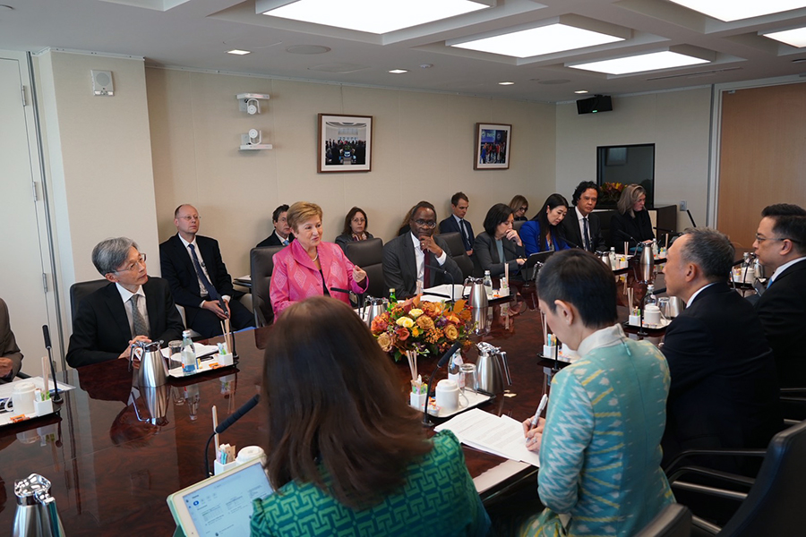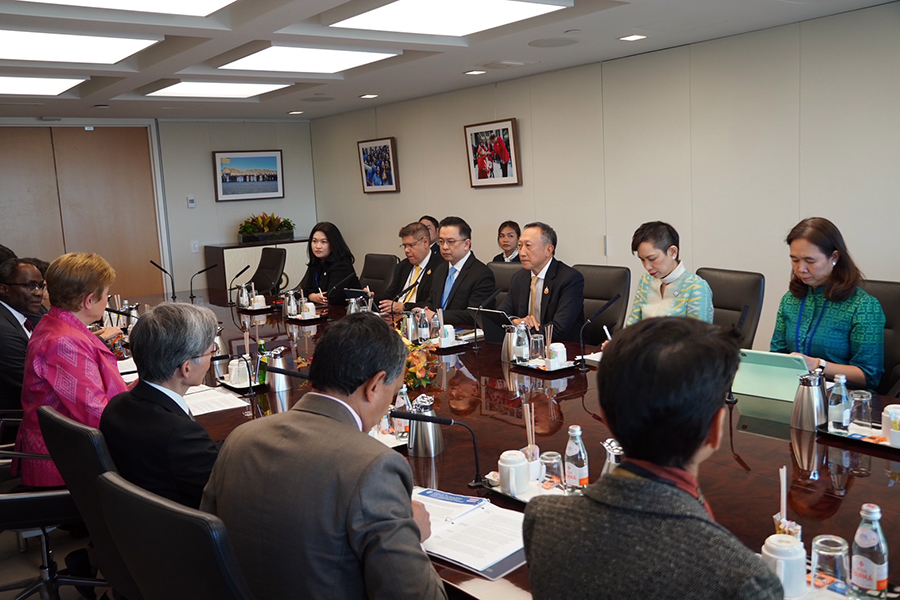 นายวรภัค ธันยาวงษ์ รัฐมนตรีช่วยว่าการกระทรวงการคลัง และนายวินิจ วิเศษสุวรรณภูมิ ผู้อำนวยการสำนักงานเศรษฐกิจการคลัง ร่วมการประชุมหารือทวิภาคีกับ Ms. Kristalina Georgiava Managing Director กองทุนการเงินระหว่างประเทศ (IMF) ในประเด็นที่ประเทศไทยจะเป็นเจ้าภาพการประชุมประจำปีสภาผู้ว่าการธนาคารโลกและกองทุนการเงินระหว่างประเทศในปี 2569 โดยหารือถึงความคืบหน้าในการเตรียมความพร้อมการเป็นเจ้าภาพ แผนการรักษาความปลอดภัย และการประชาสัมพันธ์ต่าง ๆ ซึ่งยังคงคืบหน้าไปตามแผนที่กำหนดไว้ นอกจากนี้ ยังได้หารือถึงนโยบายที่ประเทศไทยให้ความสำคัญ ณ กรุงวอชิงตัน ดี.ซี. สหรัฐอเมริกา เมื่อวันที่ 17 ตุลาคม 2568