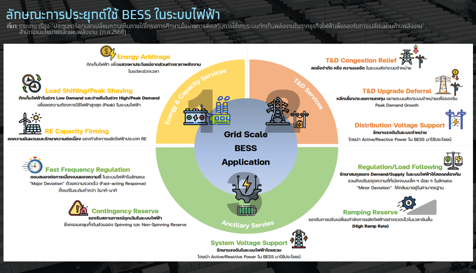 3ข้อมูลจากรายงาน เรื่อง “ประชุมหารือ/แลกเปลี่ยนความเห็นภายใต้โครงการศึกษานโยบายการส่งเสริมการใช้งานระบบกักเก็บพลังงานในภาคธุรกิจไฟฟ้าเพื่อรองรับการเปลี่ยนผ่านด้านพลังงาน”,สำนักงานนโยบายและแผนพลังงาน (ก.ค.2568)