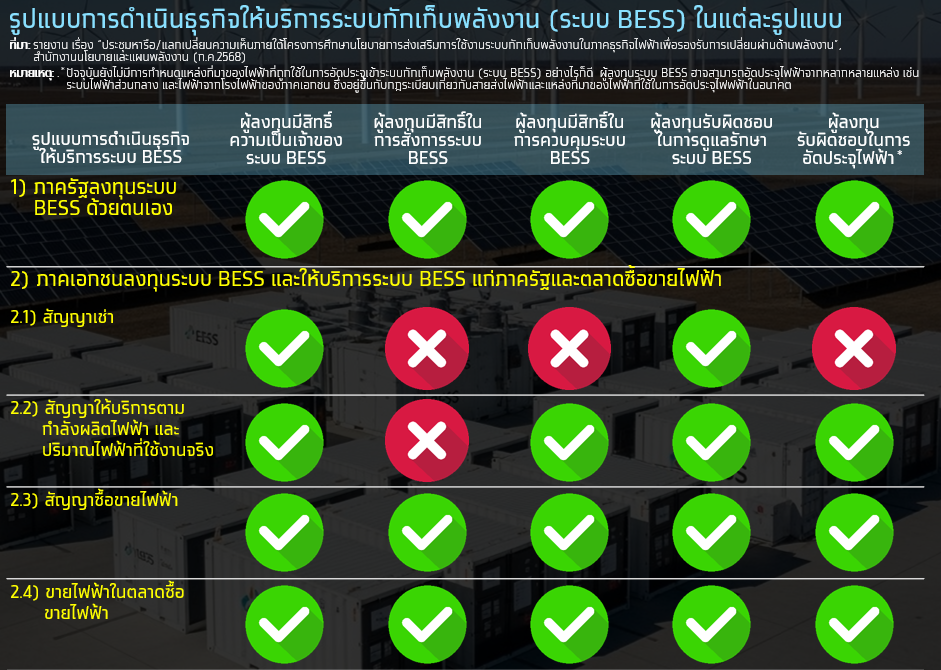 ปัจจุบันการดำเนินธุรกิจและการลงทุน BESS มี 2 รูปแบบหลัก8 ได้แก่