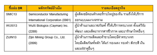 ตลาดหลักทรัพย์แห่งประเทศไทย รับจดทะเบียนตราสารแสดงสิทธิในหลักทรัพย์ต่างประเทศ (DR) จำนวน 3 หลักทรัพย์ใหม่ อ้างอิงหุ้นชั้นนำในตลาดหลักทรัพย์ฮ่องกง ออกโดย บริษัทหลักทรัพย์ เคจีไอ (ประเทศไทย) จำกัด (มหาชน) (KGI) เริ่มซื้อขายในตลาดหลักทรัพย์ไทย 19 พฤศจิกายน 2568