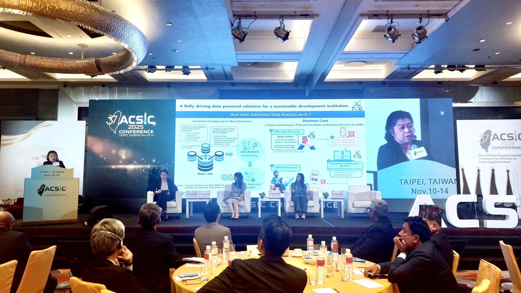 ในโอกาสนี้ นางดุสิดา ทัพวงษ์ รองผู้จัดการทั่วไปอาวุโส  สายงานบริหารช่องทางและพัฒนาผู้ประกอบการ บสย. ได้เข้าร่วมอภิปราย ภายใต้หัวข้อ “Data-Driven Decision  Making: Harnessing Data to Ensure the Sustainable Development of Institutions”  นำเสนอพัฒนาการการนำฐานข้อมูลจากลูกค้าผู้ประกอบการ SMEs โดยตรงและฐานข้อมูลจากหน่วยงานพันธมิตร อาทิ สถาบันการเงิน ผู้ปล่อยสินเชื่อ บริษัทข้อมูลเครดิตแห่งชาติ ซึ่งเป็นองค์กรที่มีการรายงานพฤติกรรมการชำระหนี้ มาผนวกกันจัดสร้างฐานข้อมูลที่นำไปสู่การสร้างแบบจำลอง Credit Scoring Model ซึ่งช่วยให้ บสย. สามารถให้บริการการค้ำประกัน SMEs ได้อย่างรวดเร็ว จำนวนอนุมัติหนังสือค้ำประกันเพิ่มมากขึ้น และความแม่นยำการประเมินความเสี่ยงของ SMEs ทำได้ดีขึ้น การปรับตัวของ บสย.ที่ปรับตัวเข้าสู่ยุค Digital และ AI ทำให้บสย. ดำเนินพันธกิจได้อย่างมีประสิทธิภาพสร้างความยั่งยืนให้กับองค์กร