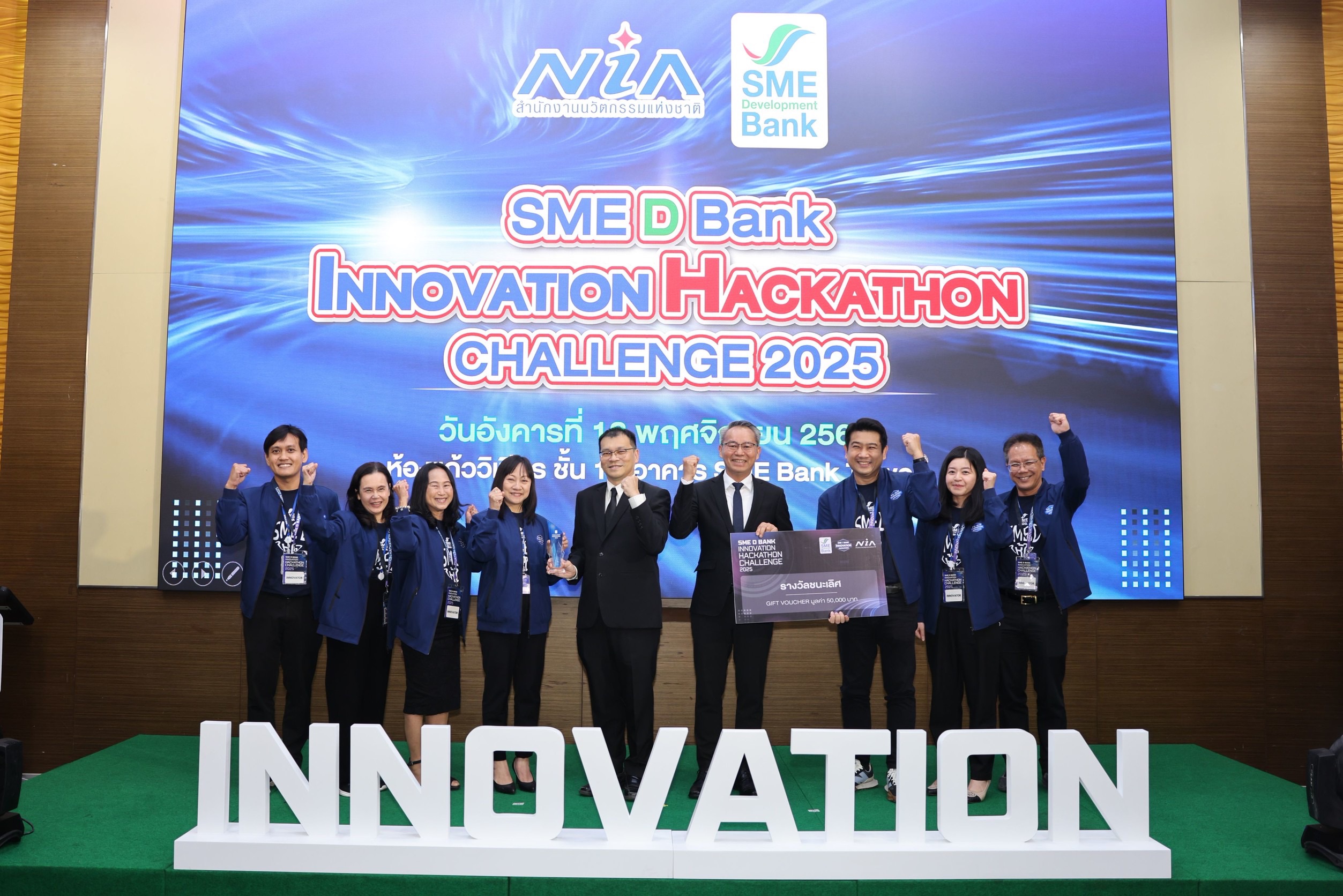 ธนาคารพัฒนาวิสาหกิจขนาดกลางและขนาดย่อมแห่งประเทศไทย (ธพว.) หรือ SME D Bank โดย นายเดชา จาตุธนานันท์ ประธานกรรมการ นายพิชิต มิทราวงศ์ กรรมการผู้จัดการ ร่วมเป็นประธาน และมอบรางวัลให้แก่ผู้ชนะเลิศการประกวดกิจกรรม “INNOVATION HACKATHON CHALLENGE 2025” ที่ธนาคารจัดขึ้น เพื่อเปิดโอกาสให้บุคลากรทุกระดับขององค์กร ได้แสดงศักยภาพด้านความคิดสร้างสรรค์ นำเสนอแนวทางการใช้นวัตกรรมที่ช่วยเพิ่มศักยภาพให้แก่องค์กร พร้อมต่อยอดสู่การสนับสนุนลูกค้าธนาคารและผู้ประกอบการเอสเอ็มอีได้อย่างเป็นรูปธรรม โดยเปิดพื้นที่ให้ผู้เข้าร่วมนำเสนอโครงการหรือแผนงานที่สามารถนำไปใช้จริงในการปฏิบัติงาน สร้างวัฒนธรรมการเรียนรู้ การร่วมคิดร่วมทำ และพัฒนานวัตกรรมภายในองค์กรอย่างต่อเนื่อง ก่อให้เกิดการมีส่วนร่วมของคนทั้งองค์กร ซึ่งเป็นพลังสำคัญขับเคลื่อนธนาคารสู่การเป็นองค์กรแห่งการเติบโตและความยั่งยืนในอนาคต