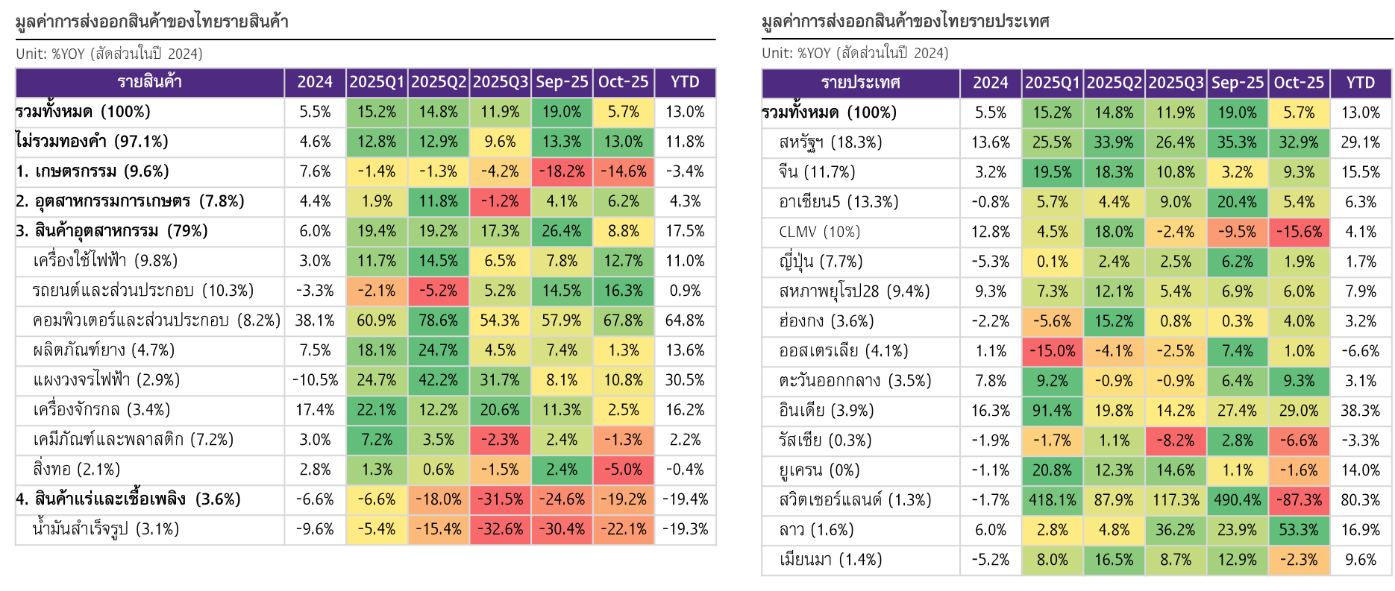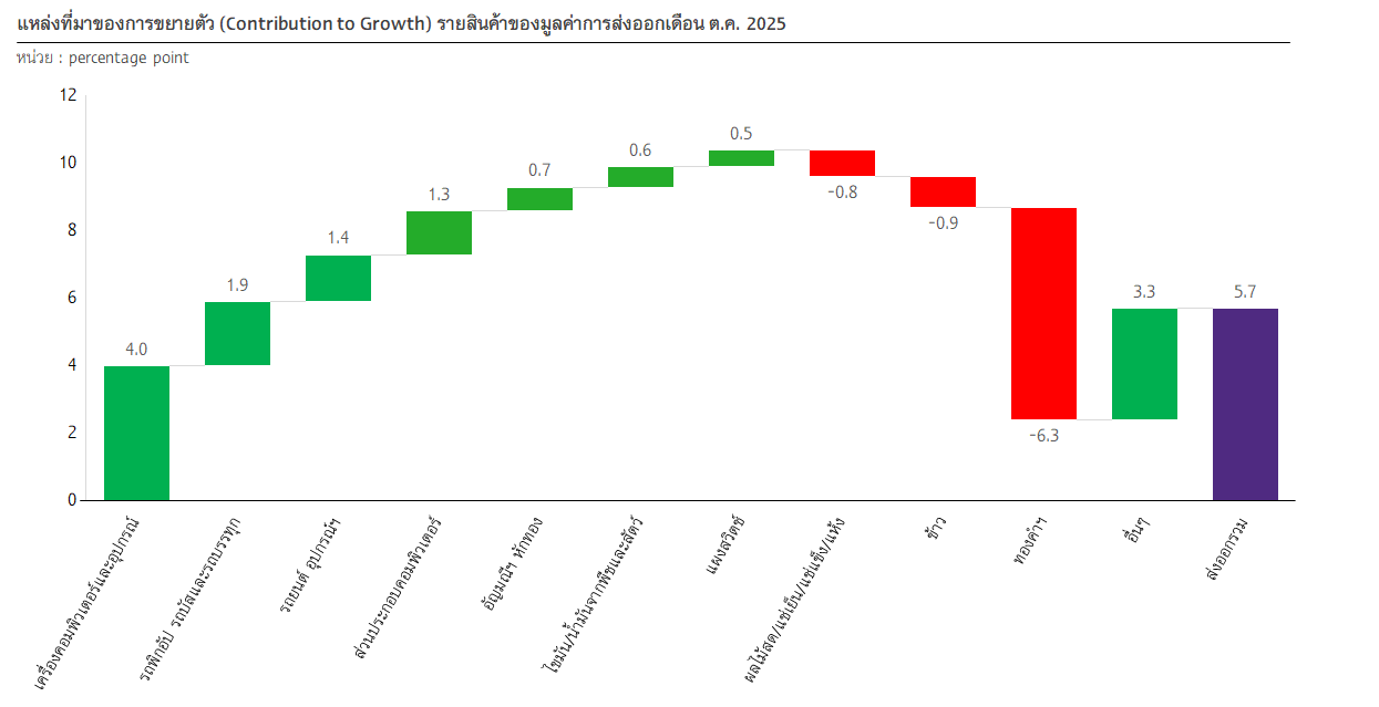 1) การส่งออกไทยไปสหรัฐฯ ยังขยายตัวสูงในเดือน ต.ค. แม้หลายสินค้าโดนกำแพงภาษีไปแล้ว
