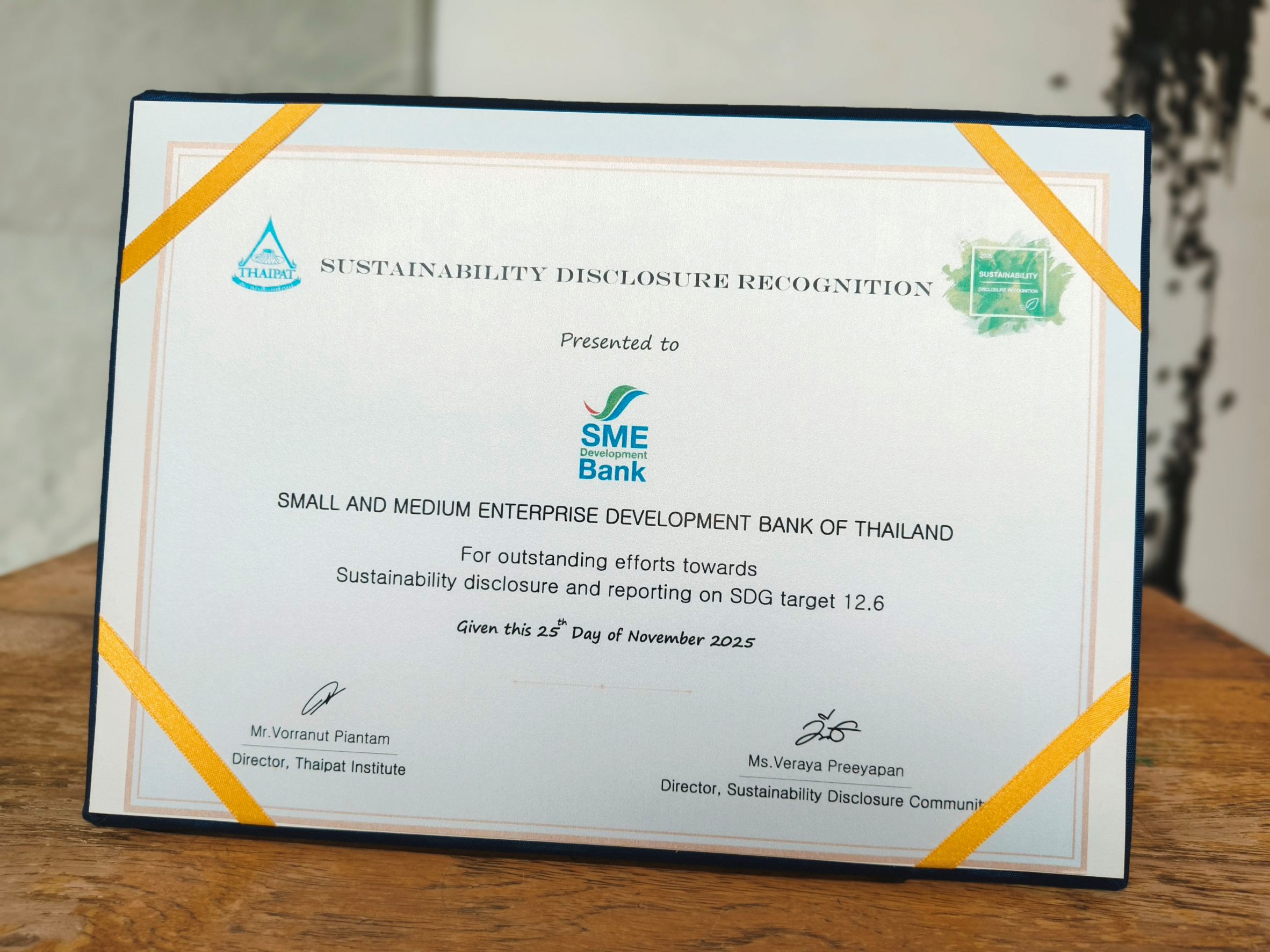 ทั้งนี้ SME D Bank ได้รับรางวัลดังกล่าว ต่อเนื่องเป็นปีที่ 2 สะท้อนถึงการเป็นองค์กร ที่มีการเปิดเผยรายงานการพัฒนาความยั่งยืนประจำปี 2567 เป็นไปตามมาตรฐานระดับสากล GRI Standards (Global Reporting Initiative Standards) ที่มุ่งเน้นการนำเสนอข้อมูลที่โปร่งใสและครบถ้วน โดยสื่อสารผลการดำเนินงานด้านความยั่งยืนไปยังกลุ่มผู้มีส่วนได้ส่วนเสีย พร้อมทั้งสะท้อนถึงการเป็นองค์กรที่ให้ความสำคัญกับมาตรฐานการพัฒนาในระดับโลก ครอบคลุมการดำเนินงานในมิติด้านสิ่งแวดล้อม สังคม และการกำกับดูแลกิจการที่ดี นำไปสู่การพัฒนาองค์กรเพื่อความยั่งยืน