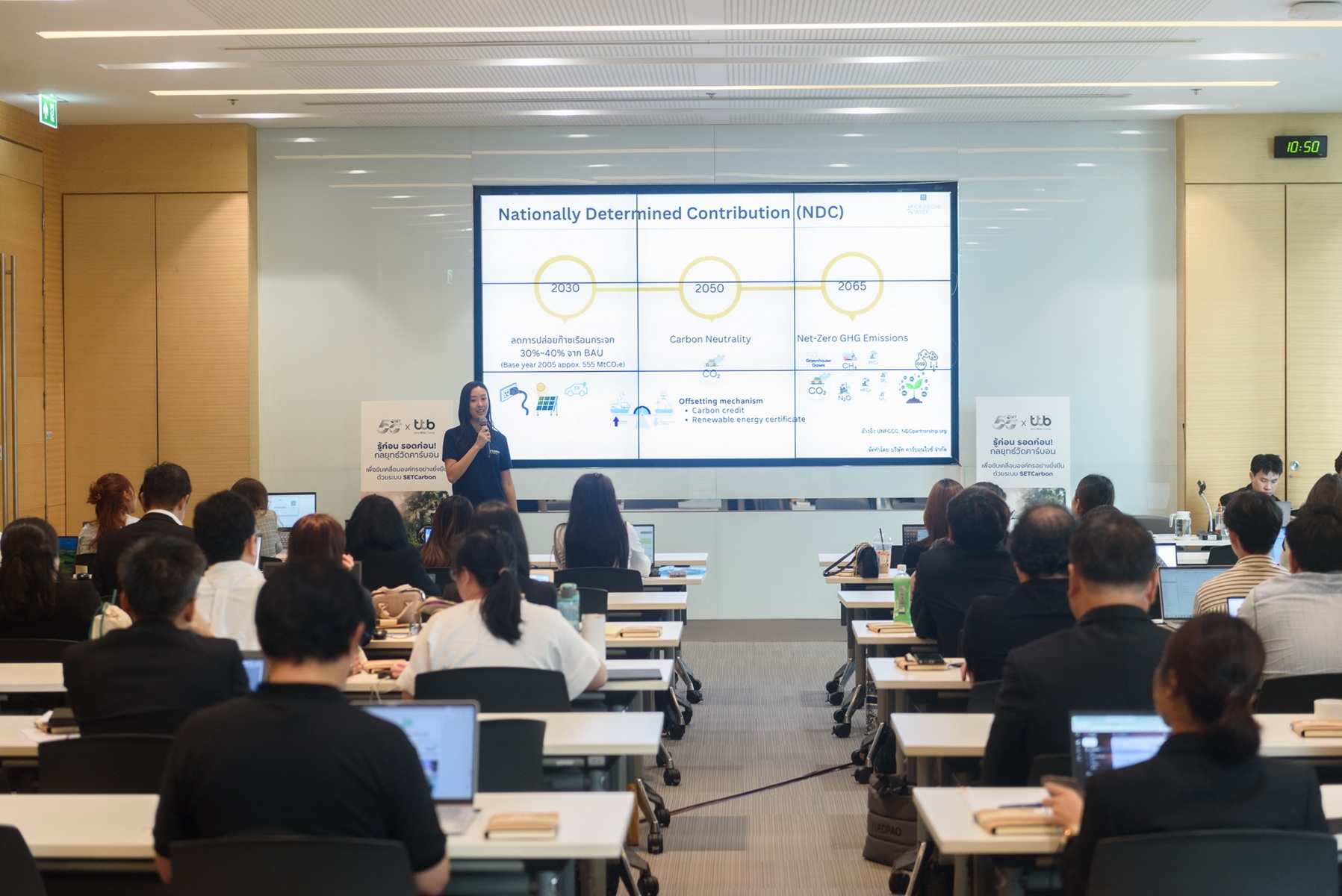 ในฐานะพันธมิตรที่มุ่งสนับสนุนลูกค้าธุรกิจให้เติบโตอย่างยั่งยืน ทีเอ็มบีธนชาต หรือ ทีทีบี เดินหน้าต่อยอดความร่วมมือกับตลาดหลักทรัพย์แห่งประเทศไทย เพื่อขยายระบบนิเวศการเงินเพื่อความยั่งยืน (Sustainable Finance) มุ่งสนับสนุนธุรกิจไทยให้เข้าถึงแหล่งเงินทุนสีเขียว ด้วยการใช้ข้อมูล ESG พิจารณาสินเชื่อ จัดงานสัมมนา Workshop “รู้ก่อน รอดก่อน! กลยุทธ์วัดคาร์บอน เพื่อขับเคลื่อนองค์กรอย่างยั่งยืน ด้วยระบบ SETCarbon” ให้กับลูกค้าธุรกิจของธนาคาร ได้เรียนรู้การใช้งานระบบ SETCarbon ซึ่งเป็นเครื่องมือสำคัญในการจัดการ คำนวณ และรายงานข้อมูลการปล่อยก๊าซเรือนกระจกอย่างมีประสิทธิภาพ ซึ่ง SETCarbon จะทำหน้าที่เป็น “พาสปอร์ต” ให้ธุรกิจทุกขนาดสามารถเข้าถึงสินเชื่อที่ได้รับสิทธิประโยชน์มากกว่าสินเชื่อทั่วไป และจะเป็นส่วนหนึ่งที่ช่วยผลักดันให้ภาคธุรกิจบรรลุเป้าหมายด้านความยั่งยืน และเติบโตไปพร้อมกับการสร้างเศรษฐกิจคาร์บอนต่ำ