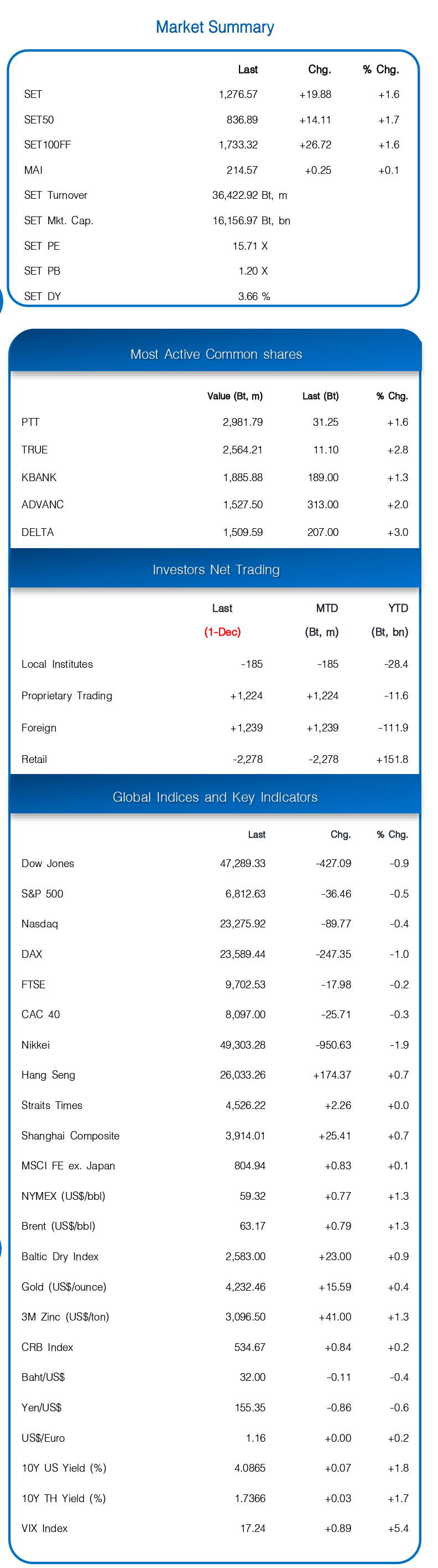 หุ้นโลกวันก่อน (1 ธ.ค.)