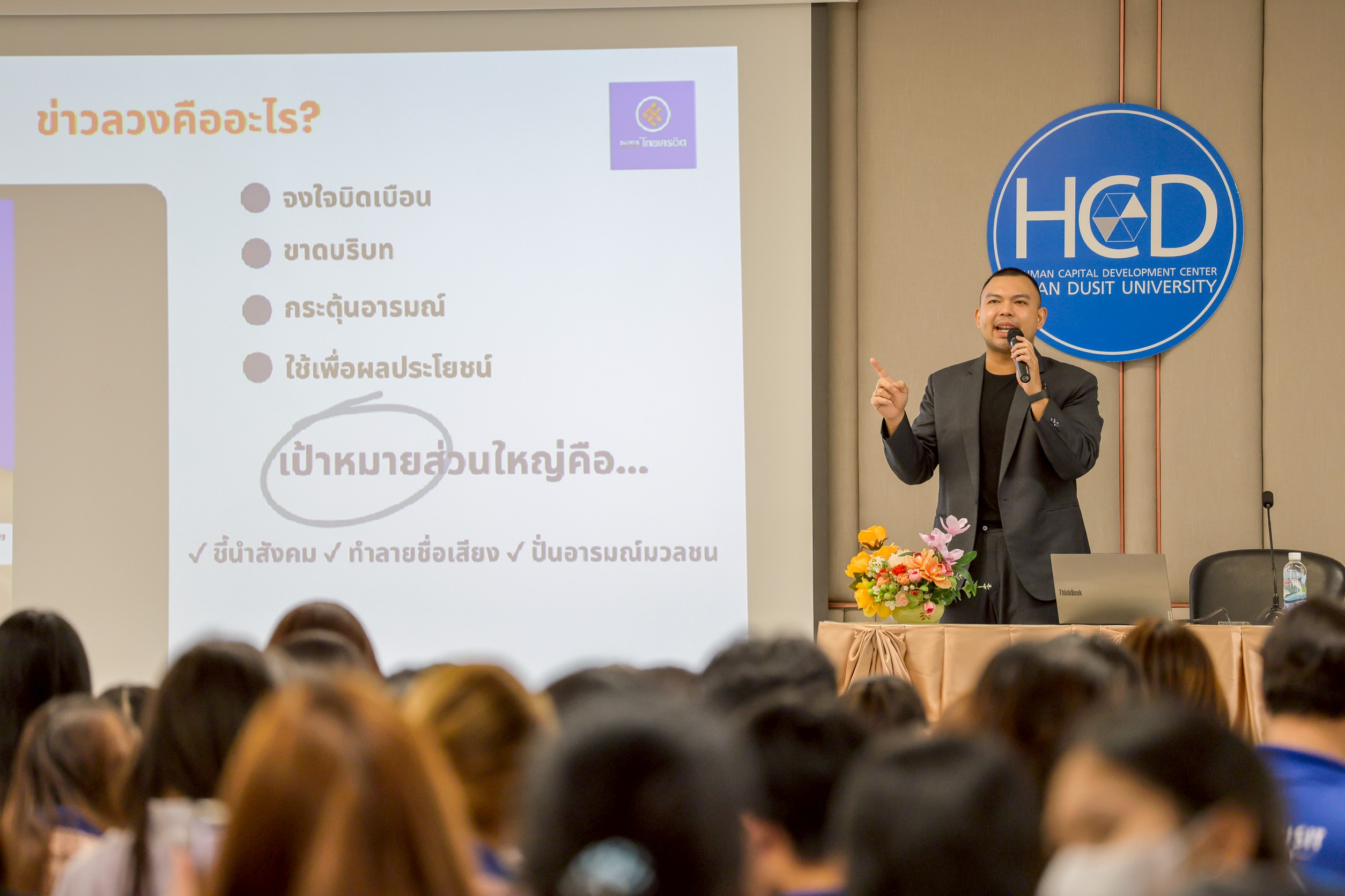 ธนาคารไทยเครดิต จำกัด (มหาชน) ตอกย้ำกลยุทธ์ให้ความสำคัญกับการส่งเสริมความรู้ความเข้าใจการป้องกันภัยไซเบอร์ยุคใหม่ ผ่านการร่วมบรรยายพิเศษในหัวข้อ “สงครามข่าวลวง & รู้ไว้ไม่โดนหลอก” เพื่อถ่ายทอดความรู้และสร้างเกราะป้องกันภัยให้กับนักศึกษามหาวิทยาลัยสวนดุสิต กิจกรรมดังกล่าวจัดขึ้นในรูปแบบ Onsite และ Online เมื่อวันที่ 24 และ 27 พฤศจิกายน 2568 โดยมีนักศึกษาเข้าร่วมรับฟังและเรียนรู้จำนวนรวมกว่า 1,000 คน