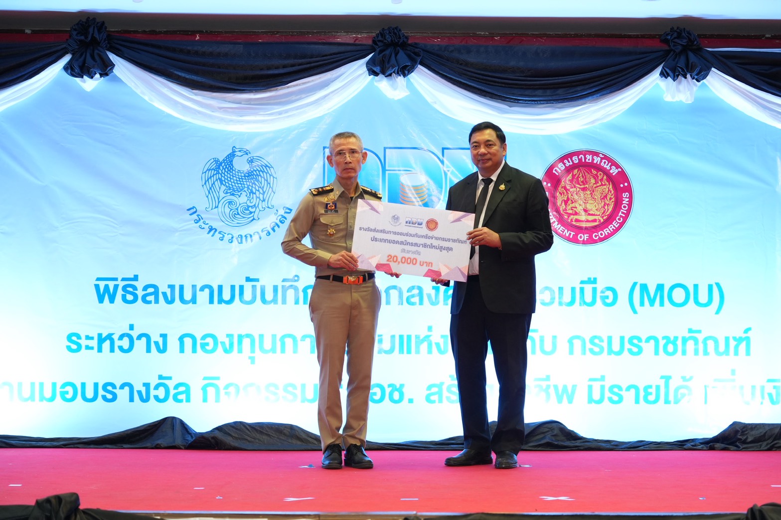 กองทุนการออมแห่งชาติ (กอช.) และ กรมราชทัณฑ์ ร่วมลงนามบันทึกข้อตกลงความร่วมมือ (MOU) การส่งเสริมวินัยการออม สำหรับผู้ต้องขัง และงานมอบรางวัล กิจกรรม “กอช. สร้างอาชีพ มีรายได้ เพิ่มเงินออม” โดยมี นางสาวจารุลักษณ์ เรืองสุวรรณ เลขาธิการคณะกรรมการกองทุนการออมแห่งชาติ (กอช.) และพันตำรวจโทประวุธ วงศ์สีนิล อธิบดีกรมราชทัณฑ์ ร่วมลงนาม และมอบรางวัล ณ ห้องสัมมนากรมราชทัณฑ์ ชั้น 3 กรมราชทัณฑ์ นนทบุรี