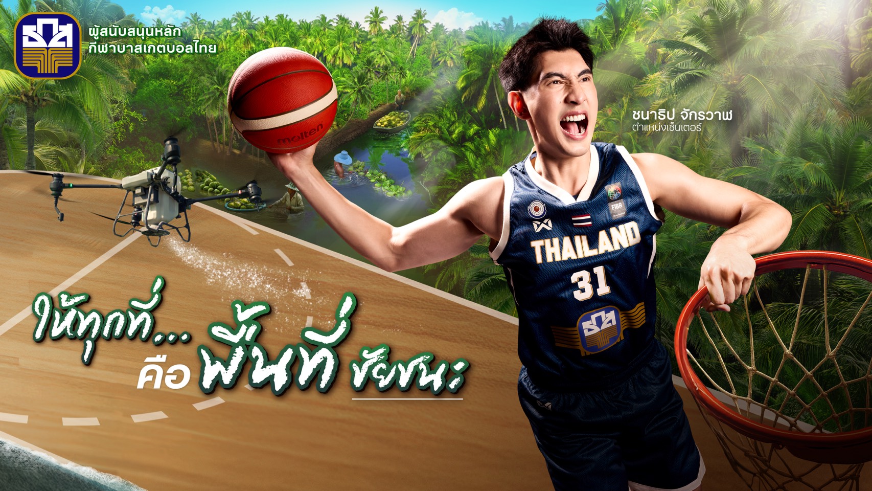 ธนาคารเพื่อการเกษตรและสหกรณ์การเกษตร (ธ.ก.ส.) ในฐานะผู้สนับสนุนสมาคมกีฬาบาสเกตบอลแห่งประเทศไทยอย่างเป็นทางการ ภายใต้ “โครงการ 1 สมาคมกีฬา 1 รัฐวิสาหกิจ พลัส” ขอเชิญชวนประชาชนคนไทยร่วมเชียร์และให้กำลังใจนักกีฬาบาสเกตบอลทีมชาติไทย พร้อมส่งพลังใจให้นักกีฬาทุกคนให้ก้าวสู่ความสำเร็จในการแข่งขันด้วยกำลังใจจากคนไทยทั้งประเทศบนเวทีระดับอาเซียนในศึกซีเกมส์ 2025 ตั้งแต่วันที่ 9 - 20 ธันวาคม 2568พร้อมชวนชมโฆษณาชุด “ให้ทุกที่…คือพื้นที่ของคุณ” ซึ่งสะท้อนภารกิจของธนาคารในการเปิดพื้นที่แห่งโอกาส ความฝัน และความสำเร็จแก่คนไทยทุกคน ไม่ว่าจะอยู่ในเส้นทางอาชีพใด เช่นเดียวกับหัวใจของกีฬาบาสเกตบอลที่ต้องอาศัยความมุ่งมั่น ความสามัคคี และพื้นที่ในการแสดงศักยภาพอย่างเต็มที่ ซึ่งเป็นค่านิยมเดียวกับที่ ธ.ก.ส. ยึดมั่นและสนับสนุนประชาชนและเกษตรกรไทยมาโดยตลอด รับชมได้แล้ววันนี้ผ่านช่องทางวิทยุ โทรทัศน์ ป้ายโฆษณา และทุกช่องทางออนไลน์ของธนาคาร ได้แก่ Line@: BAAC Family, Facebook: ธกส BAAC Thailand, Instagram: baacthailand, TikTok: @baacthailand และ Youtube: ธกส BAAC Thailand