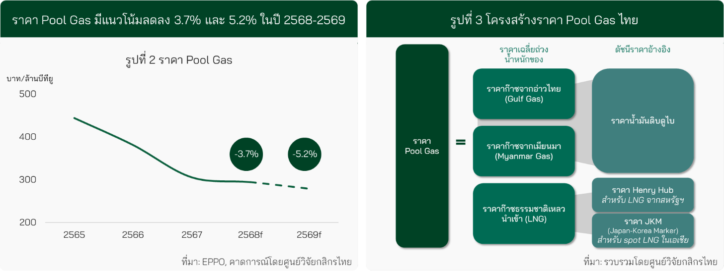 ราคา Pool Gas มีแนวโน้มลดลง 3.7% และ 5.2% ในปี 2568 และ 2569 (รูปที่ 2)