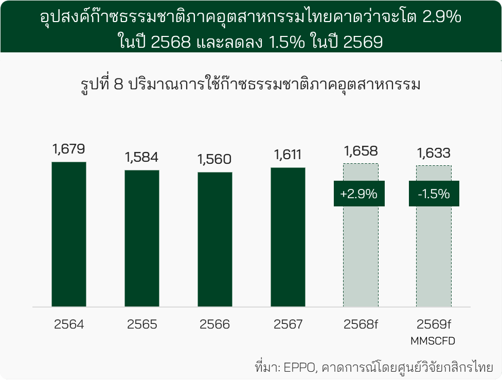 2. อุปสงค์ก๊าซภาคอุตสาหกรรมคาดว่าจะเพิ่มขึ้นในปี 2568 และลดลงในปี 2569 (รูปที่ 8)