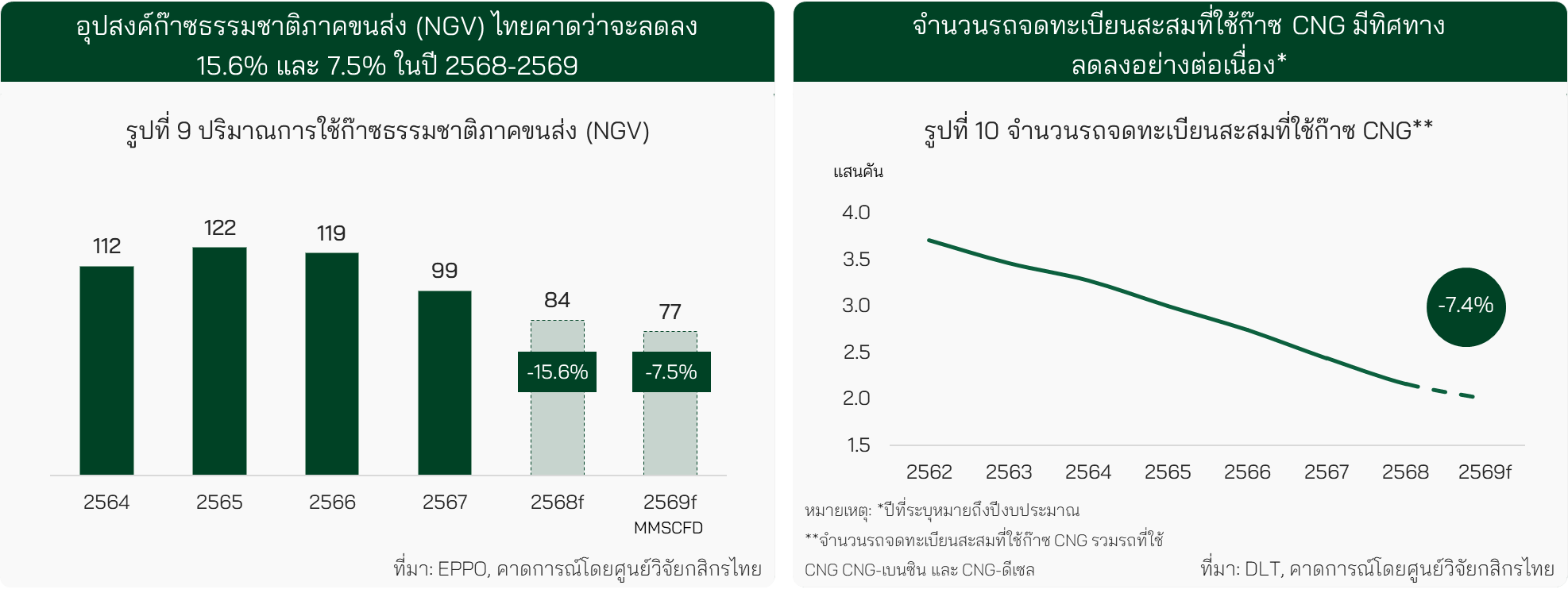 3. ความต้องการก๊าซธรรมชาติภาคขนส่ง (NGV)2 คาดว่าจะลดลง 15.6% และ 7.5% ในปี 2568 และ 2569 (รูปที่ 9)