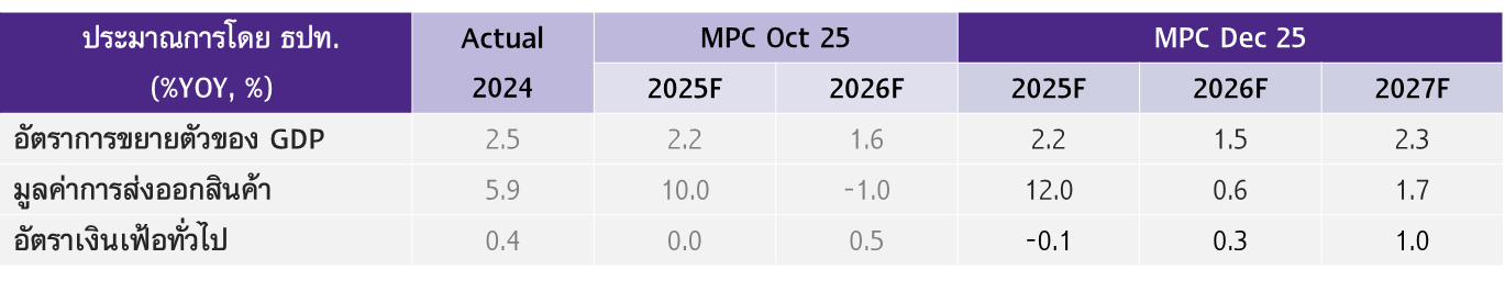 รูปที่ 1 : แนวโน้มเศรษฐกิจไทยปี 2025 – 2027 ของ ธปท. (ณ ธ.ค. 2025)