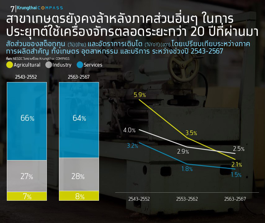 ศูนย์วิจัย Krungthai COMPASS มองการเร่งรัดการลงทุนโดยมุ่งเป้าใน 6 อุตสาหกรรมตามแนวทาง Reinvent Thailand ซึ่งเป็นกลุ่มที่มีศักยภาพและสร้าง Multiplier ได้สูง จะสามารถเพิ่มอัตราการเติบโตของจีดีพีระยะข้างหน้าได้อีกประมาณ 0.2-0.4% ต่อปี ผ่านการส่งเสริมการนำเทคโนโลยีและนวัตกรรมมาใช้ เพิ่มขีดความสามารถในการแข่งขัน ยกระดับผลิตภาพ และทักษะแรงงาน โดยใช้ประโยชน์จากมาตรการสนับสนุนจากภาครัฐที่ออกมา เช่น สินเชื่อดอกเบี้ยต่ำ (Soft loan) และการค้ำประกันสินเชื่อที่จะช่วยให้เข้าถึงแหล่งเงินทุนได้ง่ายขึ้น