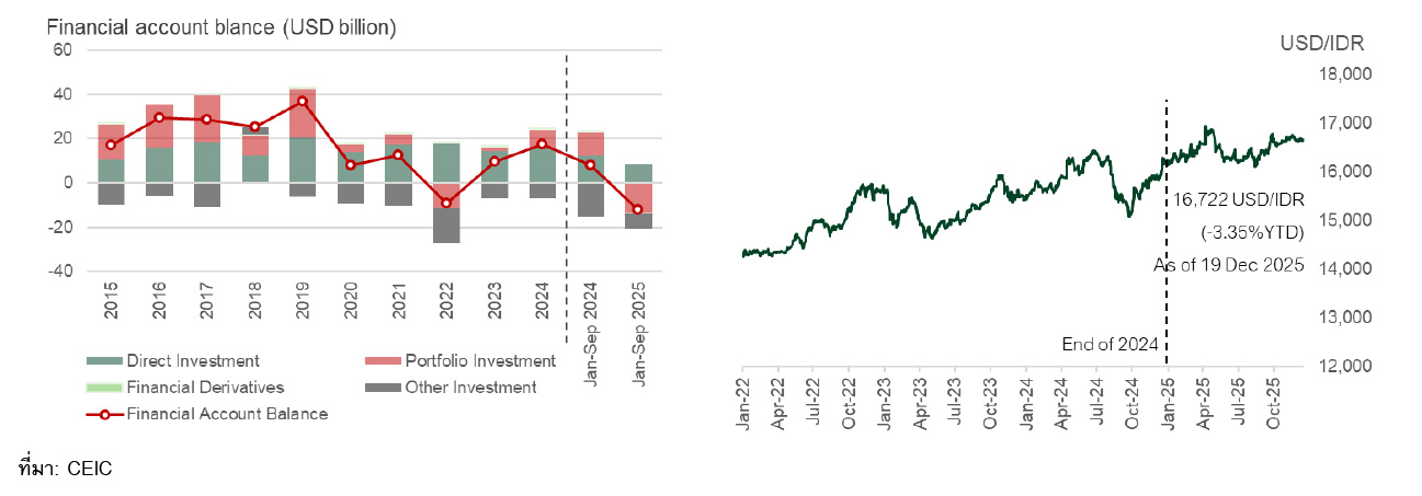 ในปี 2025 ดุลบัญชีการเงินมีความเสี่ยงขาดดุล ค่าเงินรูเปียห์ยังคงอ่อนค่าต่อเนื่อง