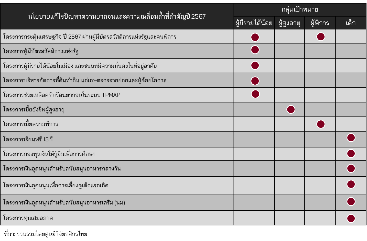 การลดความซ้ำซ้อนของสวัสดิการภาครัฐ การใช้เครื่องมือ NIT เพื่อให้สามารถออกแบบสวัสดิการในประเทศได้อย่างมีประสิทธิภาพ และช่วยลดความซ้ำซ้อนของโครงการสวัสดิการที่มีในปัจจุบัน โดยเฉพาะโครงการผู้มีบัตรสวัสดิการแห่งรัฐซึ่งใช้งบประมาณปี 2567 ราว 55,000 ล้านบาทต่อปี หรือคิดเป็นราว 1.4% ของงบประมาณรายจ่ายรวม หรือคิดเป็นต่อหัวได้รับความช่วยเหลือเพียง 375 บาทต่อเดือน ในขณะที่โครงการผู้มีบัตรสวัสดิการแห่งรัฐอาจจะมีความซ้ำซ้อนกับโครงการสวัสดิการอื่นๆ ที่มีวัตถุประสงค์ช่วยเหลือผู้มีรายได้น้อยเช่นกัน อาทิ โครงการผู้มีรายได้น้อยให้มีความมั่นคงในที่อยู่อาศัย โครงการบริหารจัดการที่ดินทำกินแก่เกษตรกรรายย่อยและผู้ด้อยโอกาส หรือเบี้ยผู้สูงอายุ และเบี้ยคนพิการที่ให้เป็นการทั่วไป ซึ่งโครงการฯ ดังกล่าวใช้งบประมาณรวมสูงถึง 110,000 ล้านบาทต่อปี หรือคิดเป็นราว 3% ของงบประมาณรายจ่าย ซึ่งสามารถควบรวมโครงการ และปรับขนาดเม็ดเงินให้ความช่วยเหลือให้มีประสิทธิภาพมากขึ้นได้ (รูปที่ 11)