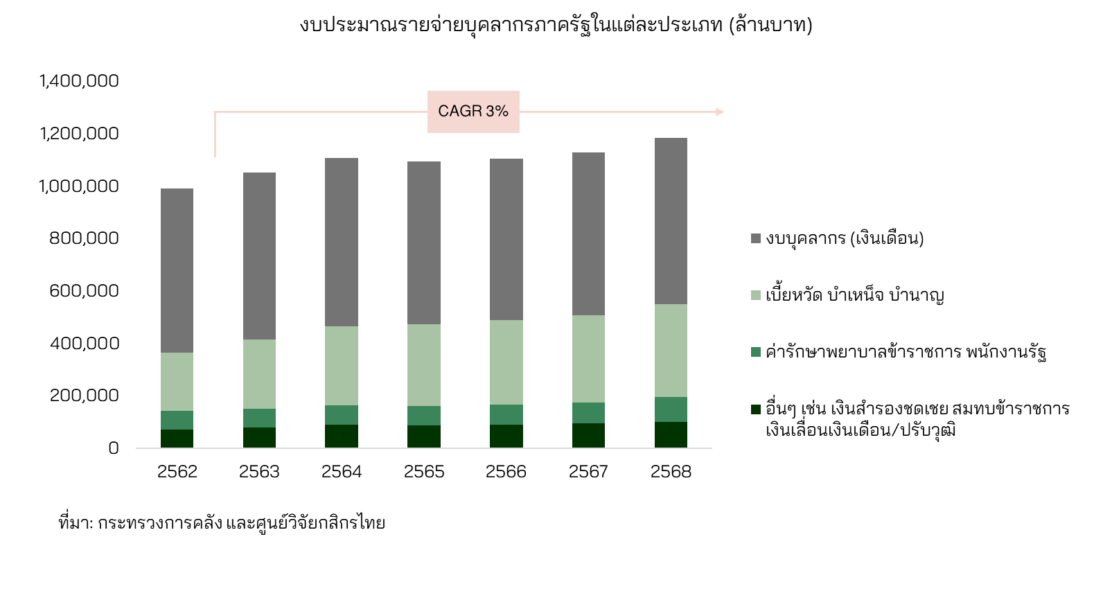 รูปที่ 14 งบประมาณบุคลากรภาครัฐบาลเพิ่มขึ้นต่อเนื่องในช่วงที่ผ่านมา