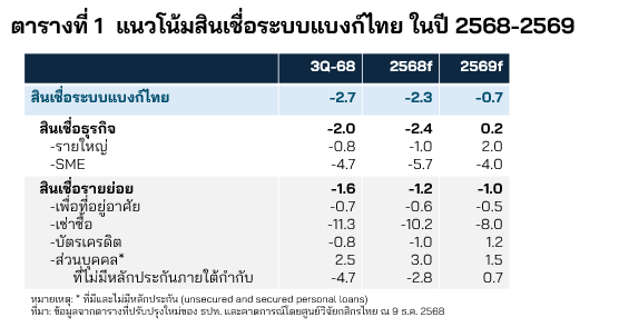 เศรษฐกิจปี 2569 ที่มีความเปราะบาง ยังมีผลต่อคุณภาพหนี้และการฟื้นตัวของสินเชื่อ คาดสินเชื่อระบบแบงก์ไทยอาจหดตัวลง -0.7% ในปี 2569