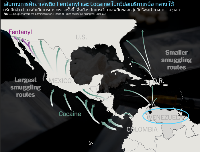 1) ด้านความมั่นคง มุ่งยุติการค้ายา/อาวุธ และขับไล่อิทธิพลต่างชาติ โดยปฏิบัติการทางทหารครั้งนี้ ฝ่ายบริหารของทรัมป์อ้างว่าเหตุผลในการดำเนินการทางทหารในเวเนซุเอลา เกิดขึ้นเพื่อการป้องกันตนเอง จากการค้ายาเสพติดและความรุนแรงของกลุ่มอิทธิพลค้ายา ซึ่งยกระดับจากการโจมตีเรือสปีดโบ๊ทหลายลำที่ถูกกล่าวหาว่าขนยาเสพติดผ่านน่านน้ำของเวเนซุเอลาในช่วงเดือน ต.ค. 68 ไปสู่การยึดเรือบรรทุกน้ำมันที่ถูกคว่ำบาตรไปแล้ว 2 ลำ และกำลังติดตามเรือลำที่ 3 โดยกองทัพสหรัฐฯ