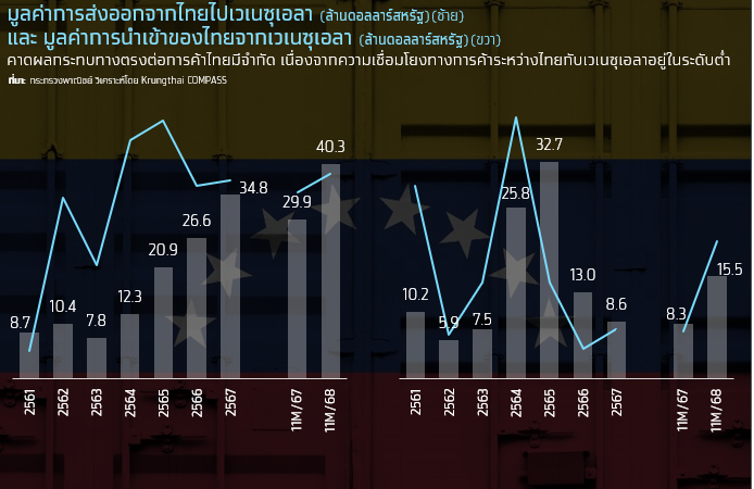 Krungthai COMPASS ประเมินว่า ผลกระทบทางตรงต่อเศรษฐกิจไทยจากเหตุการณ์ในเวเนซุเอลาผ่านช่องทางการค้าอยู่ในวงจำกัด เนื่องจากความเชื่อมโยงการค้าของทั้งสองประเทศอยู่ในระดับต่ำเมื่อเทียบกับคู่ค้าหลักในภูมิภาคละตินอเมริกา