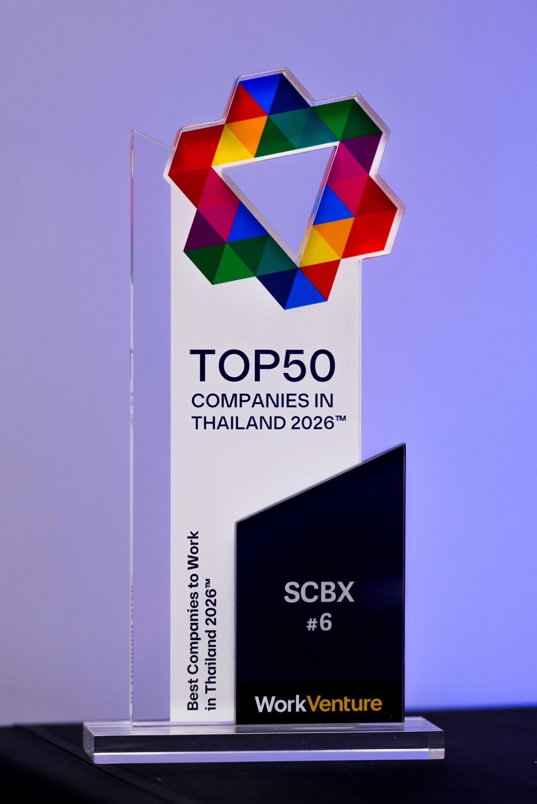 บริษัท เอสซีบี เอกซ์ จำกัด (มหาชน) หรือ SCBX กลุ่มธุรกิจเทคโนโลยีการเงินชั้นนำของประเทศไทย ได้รับการจัดอันดับให้เป็นองค์กรอันดับที่ 6 ในการสำรวจ "Top 50 Companies in Thailand 2026" โดย WorkVenture ขยับขึ้นจากอันดับ 9 ในปีที่ผ่านมา สะท้อนความเชื่อมั่นอย่างต่อเนื่องของคนรุ่นใหม่และบุคลากรคุณภาพที่มองว่า SCBX เป็นหนึ่งในองค์กรที่มีความพร้อมสำหรับการพัฒนาอาชีพในอนาคตโดยเฉพาะอย่างยิ่งด้านเทคโนโลยีและนวัตกรรมทางการเงิน