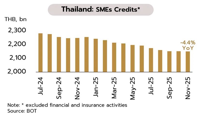 การปรับลดเงินนำส่งเข้า FIDF ล่าสุดสะท้อนการผ่อนคลายภาวะการเงินผ่านมาตรการลดต้นทุนของสถาบันการเงินโดยตรง ในบริบทที่อุปสงค์ภายในประเทศยังฟื้นตัวเปราะบาง นโยบายการคลังเผชิญข้อจำกัด และสินเชื่อภาคธุรกิจโดยเฉพาะ SMEs ยังหดตัวต่อเนื่อง มาตรการดังกล่าวจึงช่วยเสริมประสิทธิภาพนโยบายการเงิน นอกเหนือจากการลดอัตราดอกเบี้ยนโยบาย อย่างไรก็ตาม วิจัยกรุงศรียังคงมุมมองว่าธปท.มีโอกาสปรับลดอัตราดอกเบี้ยนโยบายได้อีก 1 ครั้งสู่ระดับ 1.00% ภายในปีนี้ เนื่องจากเศรษฐกิจฟื้นตัวต่ำกว่าศักยภาพและแรงกดดันเงินเฟ้อยังอยู่ในระดับต่ำ โดยมีแนวโน้มใช้นโยบายแบบผสมผสานมากขึ้น ผ่านมาตรการเฉพาะจุด (Targeted Policy) ควบคู่กับดอกเบี้ยนโยบาย รวมถึงการกำกับดูแลกิจกรรมทางการเงินที่มีความเสี่ยงเฉพาะด้าน เช่น การซื้อขายทองคำผ่านแพลตฟอร์มออนไลน์ เพื่อจำกัดความผันผวน และการเก็งกำไรเกินควร อันเป็นการรักษาเสถียรภาพของระบบการเงินโดยรวม