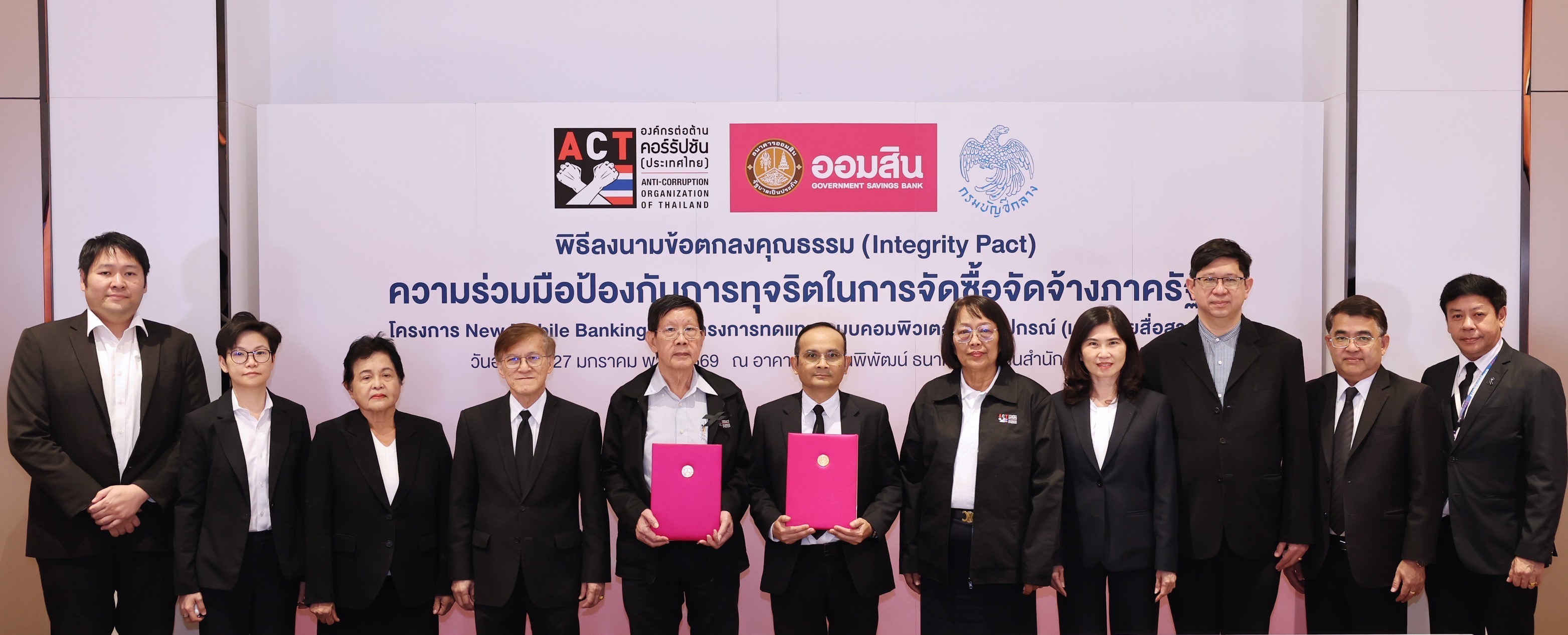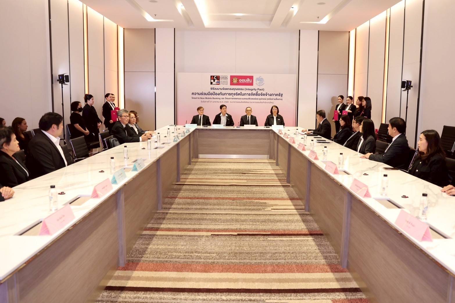 นายมานะ ทรวงทองหลาง รองผู้อำนวยการธนาคารออมสิน กลุ่มเทคโนโลยีสารสนเทศและธุรกิจดิจิทัล ลงนามบันทึกข้อตกลงคุณธรรม (Integrity Pact) กับ คณะผู้สังเกตการณ์ตามข้อตกลงคุณธรรม ประกอบด้วย กรมบัญชีกลาง และองค์กรต่อต้านคอร์รัปชัน (ประเทศไทย) จำนวน 2 โครงการ ได้แก่ โครงการ New Mobile Banking และ โครงการทดแทนระบบคอมพิวเตอร์และอุปกรณ์ : แผนงานสนับสนุนสาขา/พัฒนาโครงสร้างพื้นฐาน (Infrastructure) ซึ่งเป็นความร่วมมือป้องกันการทุจริตในการจัดซื้อจัดจ้างภาครัฐ ตามยุทธศาสตร์ในการป้องกันและปราบปรามการทุจริตคอร์รัปชันอย่างยั่งยืนของรัฐบาล ที่มีนโยบายส่งเสริมการบริหารงานที่มีธรรมาภิบาล และการป้องกันปราบปรามการทุจริตและประพฤติมิชอบในภาครัฐที่สร้างความไม่เป็นธรรมและเหลื่อมล้ำในสังคม สำหรับโครงการที่มีวงเงินจัดซื้อจัดจ้างตั้งแต่ 1,000 ล้านบาทขึ้นไป โดยสอดคล้องกับการดำเนินการด้วยหลักธรรมาภิบาลของธนาคาร ที่ให้ความสำคัญในการบริหารจัดการงบประมาณ และทรัพยากรของธนาคาร ด้วยความรอบคอบ โปร่งใส และเกิดประโยชน์สูงสุด มีกระบวนการทำงานที่มีความสุจริต เที่ยงธรรม ตรวจสอบได้ในทุกขั้นตอน และเปิดโอกาสให้ภาคเอกชนเข้าแข่งขันอย่างเท่าเทียม โดยมี นางสาวศิริพร เลิศสัตยสุกใส นายณัทธร โพธิแพทย์ รองผู้อำนวยการธนาคารออมสิน พร้อมด้วย นางสาวสิรินันท์ จิรดิลก กรรมการผู้จัดการ บริษัท จีเอสบี ไอที แมเนจเม้นท์ จำกัด ในฐานะกรรมการโครงการ และนายกิตติเดช ฉันทังกูล ผู้อำนวยการองค์กรต่อต้านคอร์รัปชัน (ประเทศไทย) ร่วมเป็นสักขีพยาน ณ อาคารออมสินพิพัฒน์ ธนาคารออมสิน สำนักงานใหญ่ เมื่อวันที่ 27 มกราคม 2569