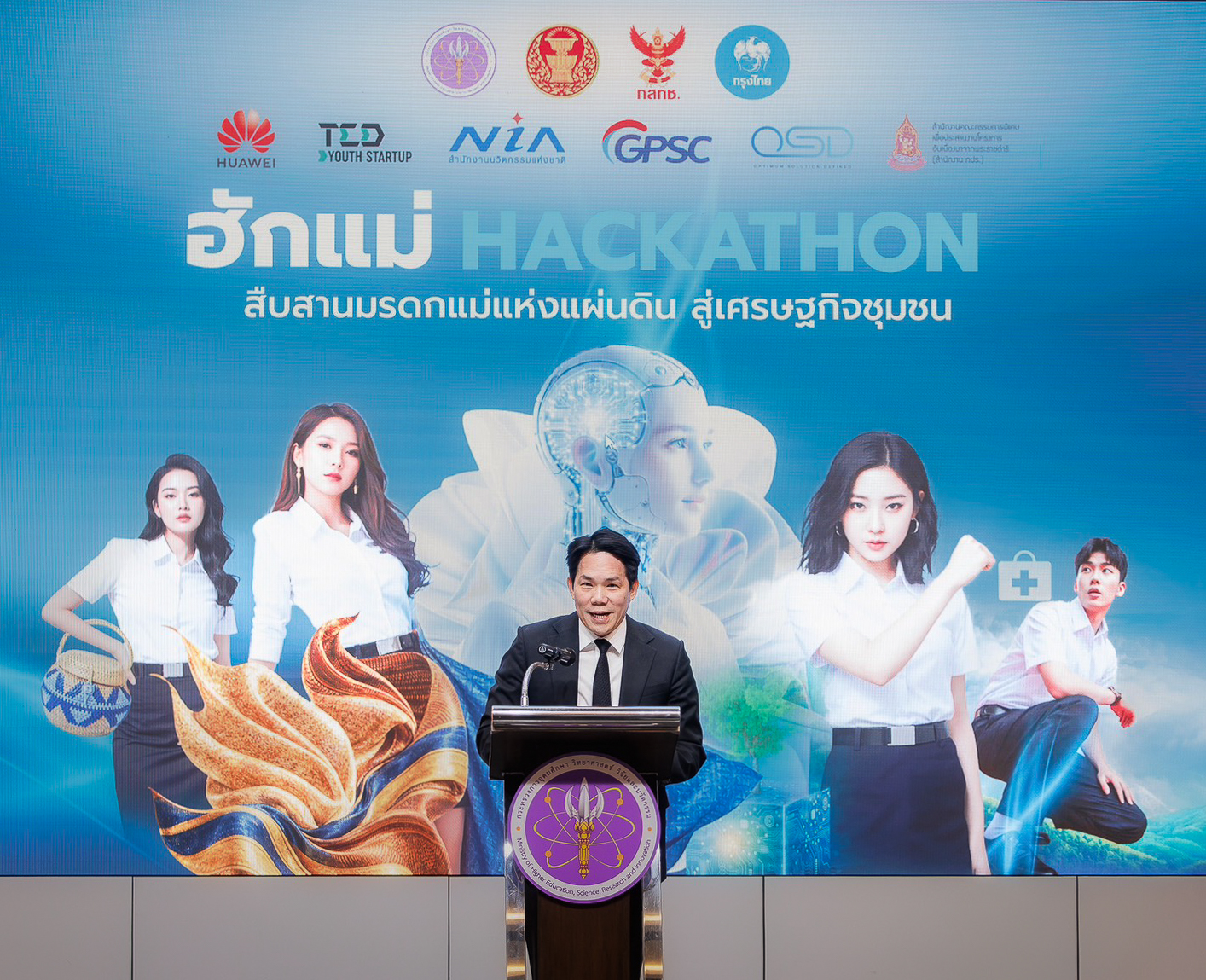 เมื่อวันที่ 2 ก.พ.69 กระทรวงการอุดมศึกษา วิทยาศาสตร์ วิจัยและนวัตกรรม (อว.) ร่วมกับคณะกรรมาธิการการเศรษฐกิจ การเงิน และการคลัง วุฒิสภา, คณะกรรมาธิการการเทคโนโลยีสารสนเทศ การสื่อสารและการโทรคมนาคม วุฒิสภา, สำนักงานคณะกรรมการกิจการกระจายเสียง กิจการโทรทัศน์และกิจการโทรคมนาคมแห่งชาติ (กสทช.), ธนาคารกรุงไทย และภาคเอกชน แถลงข่าวเปิดตัวโครงการ “Hackathon สืบสานมรดกแม่แห่งแผ่นดิน สู่เศรษฐกิจชุมชน” (Youth Hackathon: Inspired by the Royal Initiatives of the Queen Mother) มุ่งส่งเสริมนิสิตนักศึกษาให้นำเทคโนโลยีและนวัตกรรมมาขับเคลื่อนเศรษฐกิจฐานราก โดยมี ดร.พิมพ์พร ชีวานันท์ เลขานุการ รัฐมนตรีว่าการกระทรวงการอุดมศึกษา วิทยาศาสตร์ วิจัยและนวัตกรรม (อว.) เป็นประธาน, ดร.วันนี นนท์ศิริ หัวหน้าผู้ตรวจราชการกระทรวงการอุดมศึกษา วิทยาศาสตร์ วิจัยและนวัตกรรม (อว.), นายนิเวศ พันธ์เจริญวรกุล ประธานคณะกรรมาธิการการเทคโนโลยีสารสนเทศ การสื่อสาร และการโทรคมนาคม วุฒิสภา, ดร.ชญาน์นันท์ ติยะตระการชัย รองประธานคณะกรรมาธิการการเทคโนโลยีสารสนเทศ การสื่อสารและการโทรคมนาคม วุฒิสภา และ เลขานุการคณะกรรมาธิการการเศรษฐกิจ การเงิน และการคลัง วุฒิสภา, ศาสตราจารย์ (คลินิก) นายแพทย์สรณ บุญใบชัยพฤกษ์ ประธานกรรมการกิจการกระจายเสียง กิจการโทรทัศน์ และกิจการโทรคมนาคมแห่งชาติ, นายสุริพงษ์ ตันติยานนท์ ประธานผู้บริหาร Retail Banking ธนาคารกรุงไทย และคณะผู้สนับสนุนโครงการจากบริษัท หัวเว่ย เทคโนโลยี่ (ประเทศไทย) จำกัด บริษัท โกลบอล เพาเวอร์ ซินเนอร์ยี่ จำกัด (มหาชน) และบริษัท โอ เอส ดี จำกัด เข้าร่วม ณ ห้องแถลงข่าวชั้น 1 อาคารพระจอมเกล้า สป.อว.
