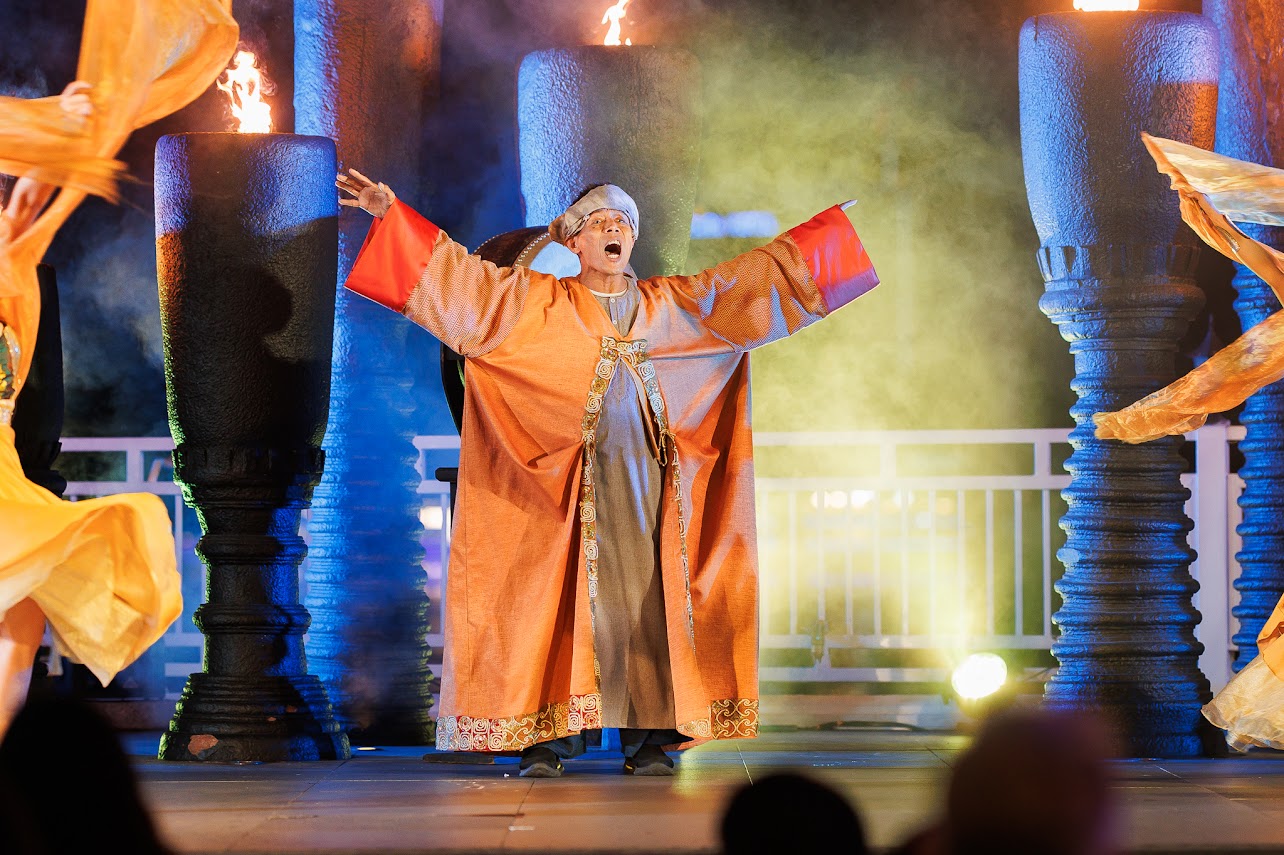 “ศาลา ละคร” ถูกออกแบบให้เป็นมากกว่าห้องอาหาร แต่เป็นพื้นที่เล่าเรื่องวัฒนธรรมไทยผ่านการแสดงร่วมสมัยชุด “สุวรรณสยามนิรันดร์กาล (The Eternal Siam)” ความยาวประมาณ 1 ชั่วโมง ออกแบบโดย ครูนาย – มานพ มีจำรัส ศิลปินศิลปาธร จากกระทรวงวัฒนธรรม ถ่ายทอดเรื่องราวประวัติศาสตร์ วิถีชีวิต และศิลปะการแสดงของไทย ตั้งแต่ความผูกพันกับสายน้ำ ขบวนพยุหยาตราชลมารค ไปจนถึงมรดกทางวัฒนธรรมอย่างหนังใหญ่และเพลงพื้นบ้าน ในรูปแบบที่เข้าถึงผู้ชมร่วมสมัย