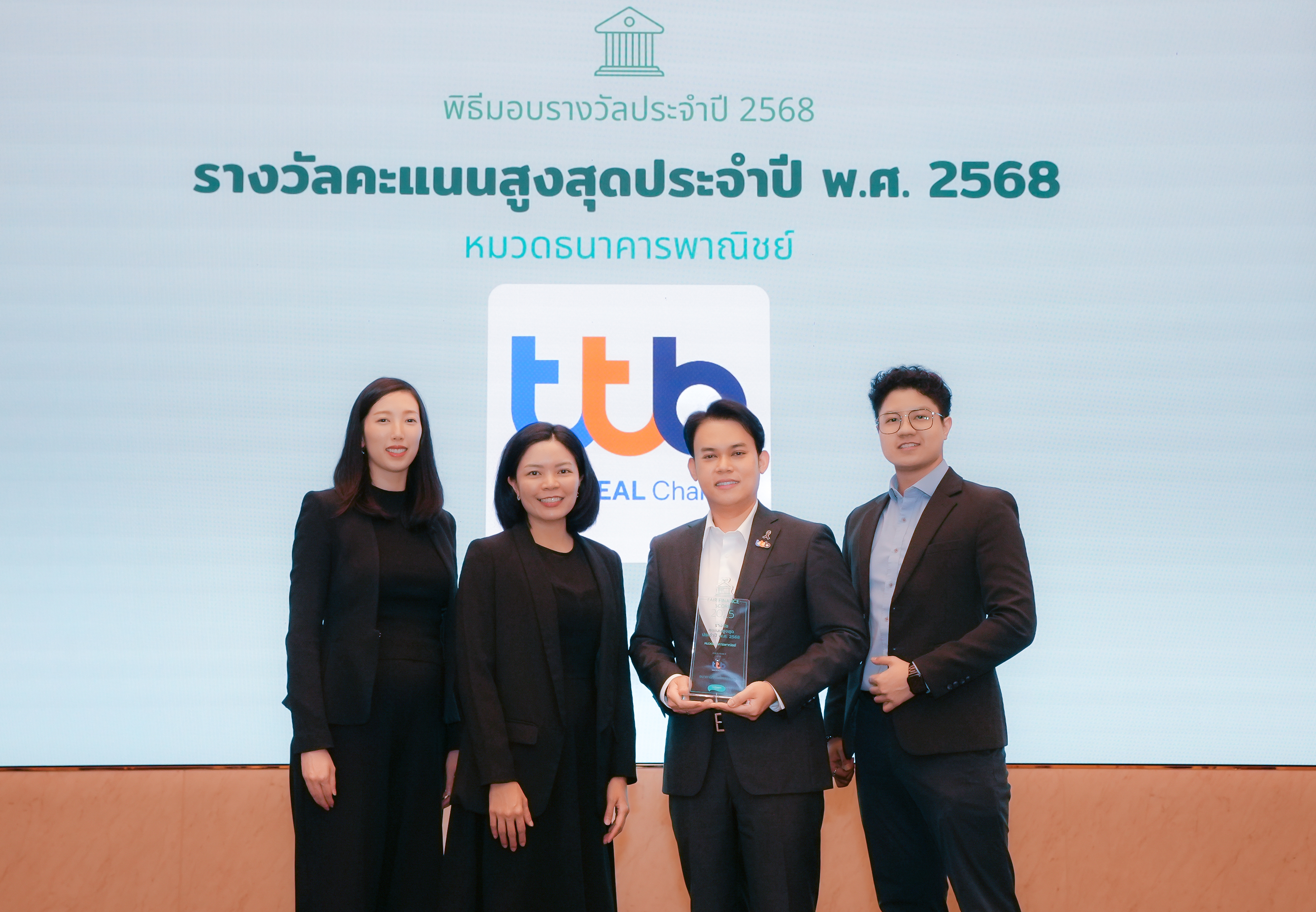ทีทีบี ตอกย้ำความสำเร็จบนเส้นทาง "การธนาคารเพื่อความยั่งยืน" ครองอันดับหนึ่งต่อเนื่องเป็นปีที่ 7 ธนาคารที่มีผลการประเมินนโยบายธนาคารไทยจาก 11 แห่ง ด้วยคะแนนรวมสูงสุด 40.75% จากผลการประเมินโดยคณะวิจัยแนวร่วมการเงินที่เป็นธรรมประเทศไทย (Fair Finance Thailand) ประจำปี 2568 ที่มีความโดดเด่นใน 5 หมวด คือ การขยายบริการทางการเงิน การคุ้มครองผู้บริโภค การทุจริตคอร์รัปชัน สิทธิมนุษยชน และสิทธิแรงงาน ซึ่งสะท้อนถึงจุดแข็งของธนาคารในหลายมิติ รวมถึงภาพการดำเนินธุรกิจที่ไม่ได้มองตัวเลขกำไรเป็นหลัก แต่ให้ความสำคัญกับ 'คุณธรรมและความรับผิดชอบต่อผู้มีส่วนได้เสียทุกกลุ่ม' ในการขับเคลื่อนธุรกิจ โดยเฉพาะในหมวดการขยายบริการทางการเงินและการคุ้มครองผู้บริโภคเป็นตัวชี้วัดสำคัญว่าทีทีบีพร้อมยืนเคียงข้าง ปกป้องผลประโยชน์ของลูกค้าในทุกมิติ และเดินหน้ายกระดับด้านความยั่งยืนที่ไม่ได้มุ่งแค่เรื่องสิ่งแวดล้อมหรือสังคมเป็นหลัก แต่มองถึงการเข้าไปช่วยเหลือและสนับสนุนผู้มีส่วนได้เสียทุกกลุ่มให้สามารถปรับตัวสอดรับการเปลี่ยนผ่านด้านต่าง ๆ ที่จะเกิดขึ้นในอนาคต โดยมีนายกมลพันธ์ ลักษณา หัวหน้าการพัฒนาที่ยั่งยืน ทีทีบี เป็นตัวแทนรับมอบรางวัลจากนางสาวสฤณี อาชวานันทกุล หัวหน้าคณะวิจัย แนวร่วมการเงินที่เป็นธรรมประเทศไทย เมื่อเร็ว ๆ นี้