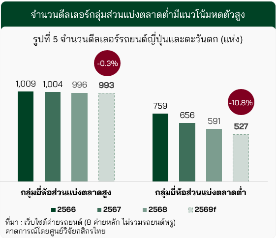 ดีลเลอร์รถญี่ปุ่น & ตะวันตกที่มีส่วนแบ่งตลาดต่ำเสี่ยงหดตัวสูง