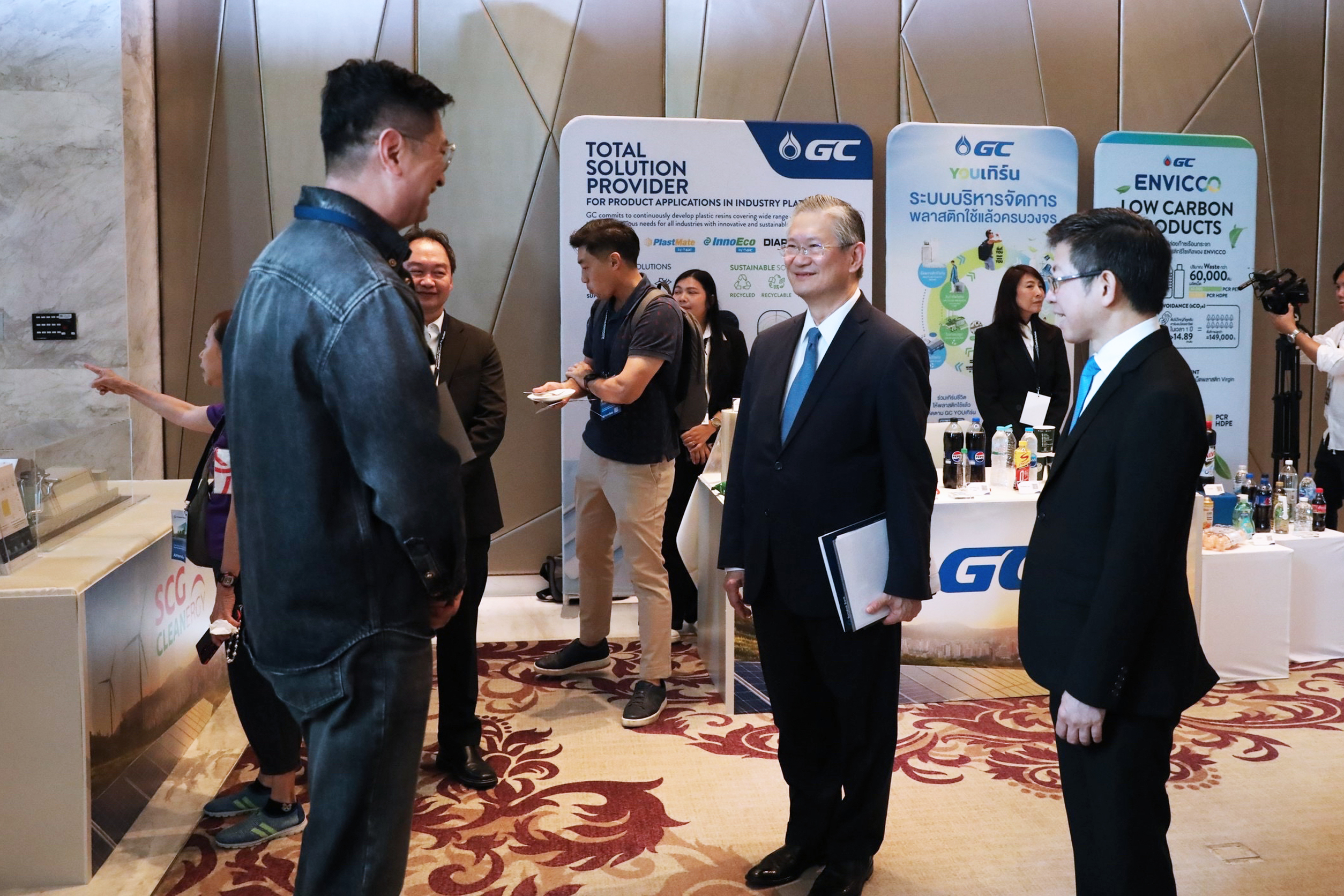 ขณะที่ในวงเสวนา หัวข้อ “Driving Sustainability in the Era of Climate Change” ได้รับเกียรติจาก ดร.ธีระพล ถนอมศักดิ์ยุทธ ประธานคณะผู้บริหารด้านความยั่งยืนองค์กรและการพัฒนากลยุทธ์ เครือเจริญโภคภัณฑ์, นางต้องใจ ธนะชานันท์ รองกรรมการผู้อำนวยการใหญ่ ผู้บริหารสูงสุดกลุ่มงานความยั่งยืนและกลยุทธ์ บริษัท ไทยเบฟเวอเรจ จำกัด (มหาชน) และ นางสาวกรกมล กอไพศาล รองกรรมการผู้จัดการใหญ่ สายงานกลยุทธ์ พัฒนาธุรกิจ และพาณิชยกิจ กลุ่มธุรกิจผลิตภัณฑ์เคมีมูลค่าเพิ่ม บริษัท พีทีที โกลบอล เคมิคอล จำกัด (มหาชน) ร่วมแชร์ประสบการณ์การจัดการโครงการเพื่อลดการปล่อยก๊าซเรือนกระจก รวมถึงทิศทางและโอกาสใหม่ของตลาดผู้บริโภค ที่ให้ความสำคัญกับสินค้าหรือบริการที่เป็นมิตรต่อสิ่งแวดล้อมและมีความยั่งยืน โดย ดร.กอบศักดิ์ ภูตระกูล กรรมการรองผู้จัดการใหญ่ ธนาคารกรุงเทพ จำกัด (มหาชน) เป็นผู้ดำเนินการเสวนา
