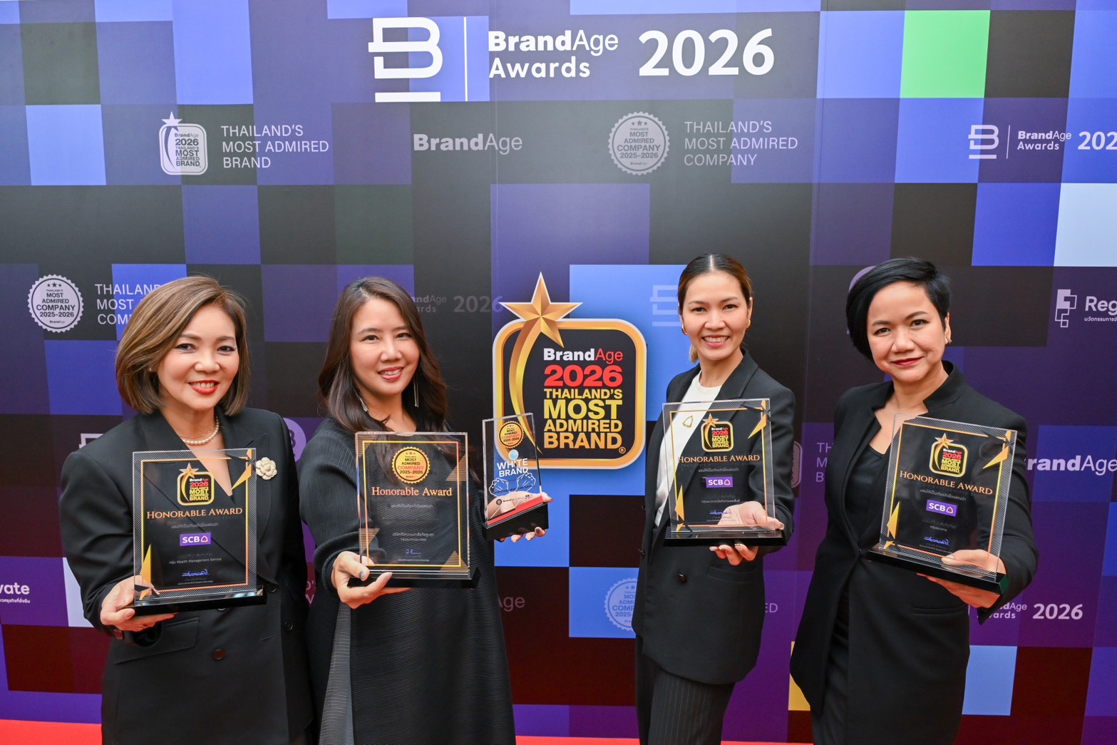 ธนาคารไทยพาณิชย์ กวาด 5 รางวัลสุดยอดองค์กรและแบรนด์น่าเชื่อถือ (2025-2026 Thailand's Most Admired Company) และ 2026 Thailand's Most Admired Brand สูงสุดในกลุ่มธนาคาร จากเวที BrandAge Awards 2026 ตอกย้ำความน่าเชื่อถือที่ได้รับความไว้วางใจจากผู้บริโภคทุกมิติ ทั้งระดับองค์กร และระดับแบรนด์ SCB ครองแชมป์ครอบคลุมกลุ่มแบรนด์ ธนาคารพาณิชย์ ต่อเนื่องสามปีซ้อน ธนาคารเพื่อเอสเอ็มอีต่อเนื่อง 7 ปีซ้อน ธนาคารและบริการทางการเงินกลุ่ม Wealth Management Service สองปีซ้อน และครั้งแรกกับการได้รับการยกย่องเป็น สุดยอดแบรนด์ธรรมาภิบาล ขับเคลื่อนการดำเนินงานด้วยหลักธรรมาภิบาลที่ผู้บริโภคยอมรับ ตอกย้ำความสำเร็จในแนวทาง “อยู่ อย่าง ยั่งยืน (Live Sustainably) ที่มุ่งมั่นนำพลังการเงินร่วมขับเคลื่อนธุรกิจไทยเปลี่ยนผ่านสู่แนวทางการดำเนินงานที่สอดคล้องกับหลัก ESG และเป้าหมายการพัฒนาที่ยั่งยืนของประเทศ ตามกลยุทธ์ Digital Bank with Human Touch นำศักยภาพทางดิจิทัลยกระดับบริการเพื่อมอบประสบการณ์อย่างไร้รอยต่อในทุกช่องทางโดยมีลูกค้าเป็นศูนย์กลางอย่างแท้จริง โดยมี นางสาวอินทิรา จิตรานุเคราะห์ ผู้ช่วยผู้จัดการใหญ่ Head of Marketing นางสาวอรุณี บุญเกิด ผู้ช่วยผู้จัดการใหญ่ ผู้บริหารสายงาน Business Banking I นางสาวรุ่งเพ็ชร พรรณาปยุกต์ ผู้อำนวยการอาวุโส Segment Marketing and Privilege Management และ นางจันทร์เพ็ญ จันทนา ผู้อำนวยการอาวุโส ผู้บริหารฝ่าย Social Media, Digital Content & Creative Management เป็นผู้แทนธนาคารเข้ารับมอบรางวัล เมื่อเร็วๆ นี้