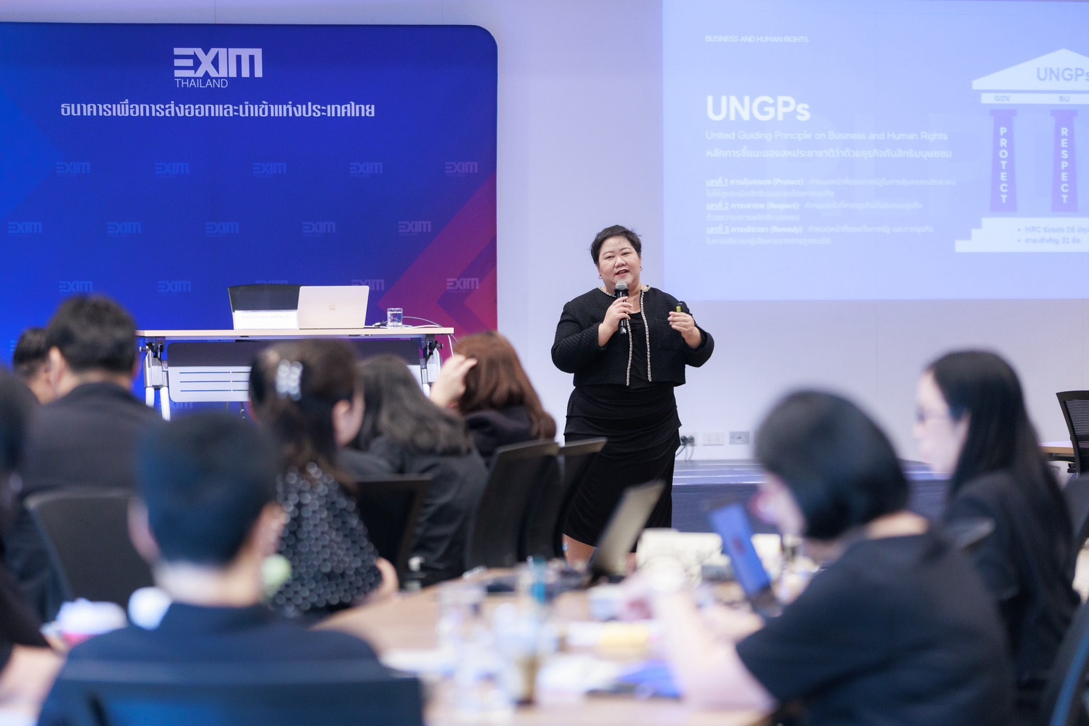 การอบรมดังกล่าวจัดขึ้นสำหรับผู้บริหารและพนักงาน EXIM BANK โดยมุ่งยกระดับการบริหารจัดการความเสี่ยงด้านสิทธิมนุษยชนตลอดห่วงโซ่อุปทานและห่วงโซ่คุณค่า อันเป็นกลไกสำคัญในการเสริมสร้างมาตรฐานการดำเนินธุรกิจให้เทียบเท่าสถาบันการเงินชั้นนำระดับโลก เสริมสร้างความเชื่อมั่นแก่ผู้มีส่วนได้ส่วนเสีย และสนับสนุนการบรรลุเป้าหมายการพัฒนาที่ยั่งยืน (SDGs)