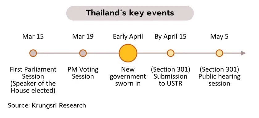 ผลการลงมติของสภาฯ ข้างต้นนับเป็นสถานการณ์ที่ประธานฯ ฝ่ายนิติบัญญัติและผู้นำฝ่ายบริหารมาจากพรรคการเมืองเดียวกันเป็นครั้งแรกในรอบกว่า 15 ปี ซึ่งน่าจะช่วยเอื้อต่อความมีเสถียรภาพของรัฐบาลชุดใหม่ การดำเนินนโยบาย การอนุมัติกฎหมายที่เกี่ยวข้อง และกระบวนการงบประมาณ อย่างไรก็ตามรัฐบาลใหม่กำลังเผชิญกับวิกฤตพลังงานจากความตึงเครียดในตะวันออกกลาง โดยล่าสุดเตรียมออกมาตรการ อาทิ (1) เตรียมงบประมาณในส่วนของ พ.ร.บ.โอนงบประมาณ 2569 วงเงิน 50,000 ล้านบาท (2) เร่งเบิกจ่าย รวมทั้งผลักดันเงินลงทุนรัฐวิสาหกิจ (3) เตรียม พ.ร.ก.ค้ำประกันเงินกู้ให้กับกองทุนน้ำมันเชื้อเพลิง ไม่น้อยกว่า 40,000 ล้านบาท และ (4) หากจำเป็นมีแนวทางการลดภาษีสรรพสามิตน้ำมัน สำหรับการเจรจาการค้ากับสหรัฐ รัฐบาลใหม่ต้องยื่นความเห็นเป็นลายลักษณ์อักษรต่อผู้แทนการค้าสหรัฐ (USTR) ภายในวันที่ 15 เม.ย. และยื่นคำร้องเพื่อเข้าร่วมการพิจารณาสาธารณะวันที่ 5 พ.ค. ที่กรุงวอชิงตัน ดี.ซี. ก่อนเปิดโอกาสให้ยื่นความเห็นโต้แย้งเพิ่มภายใน 7 วันหลังเสร็จสิ้นการพิจารณา