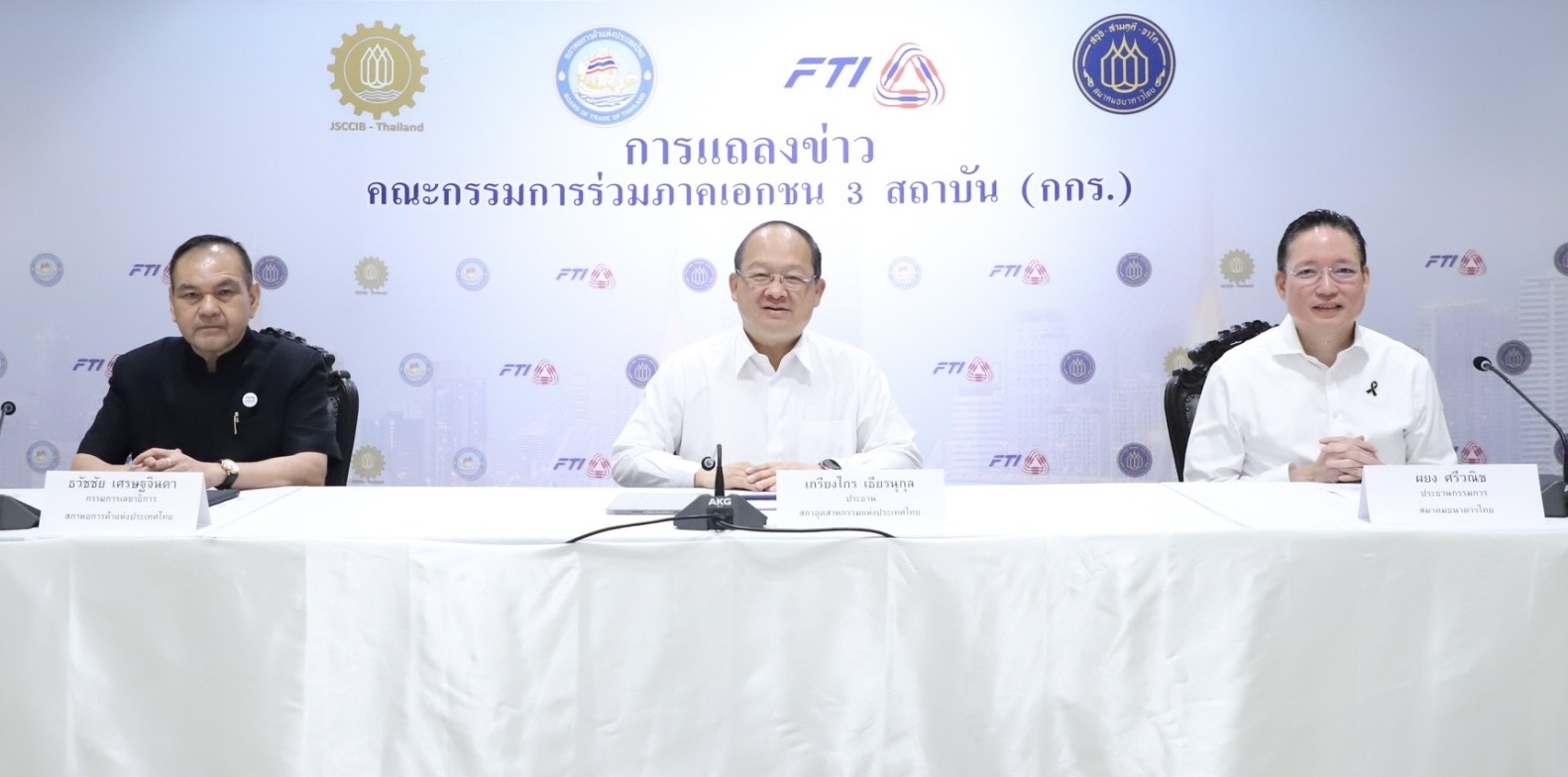 วันนี้ (1 เม.ย.69) ที่ประชุมคณะกรรมการร่วมภาคเอกชน 3 สถาบัน (กกร.) จัดประชุมประจำเดือนเมษายน 2569 หลังการประชุมเสร็จสิ้นได้เปิดแถลงข่าว โดยมีนายเกรียงไกร เธียรนุกุล ประธานสภาอุตสาหกรรมแห่งประเทศไทย นายผยง ศรีวณิช ประธานกรรมการ สมาคมธนาคารไทย และ ดร.พจน์ อร่ามวัฒนานนท์ ประธานกรรมการ สภาหอการค้าแห่งประเทศไทย ร่วมแถลงข่าว โดยมีสาระสำคัญดังนี้