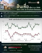 • เงินให้สินเชื่อและดอกเบี้ยค้างรับสุทธิ ณ สิ้นเดือนก.พ. 2569 อยู่ที่ระดับ 13.53 ล้านล้านบาท ลดลง 1.15% YoY เทียบกับที่หดตัว 1.67% YoY ในเดือนม.ค. 2569 ซึ่งนับเป็นการหดตัวของสินเชื่อเป็นเดือนที่ 21 ติดต่อกันและสอดคล้องกับแนวโน้มชะลอตัวของเศรษฐกิจไทย ประกอบกับสถาบันการเงินยังคงวางแนวทางปล่อยสินเชื่อตามศักยภาพของลูกหนี้ท่ามกลางปัจจัยเสี่ยงที่เพิ่มขึ้นซึ่งล่าสุดมีประเด็นสงครามในตะวันออกกลางเข้ามาเพิ่มเติม ทั้งนี้ รายงานผลสำรวจภาวะและแนวโน้มการปล่อยสินเชื่อของธปท. สะท้อนว่า สถาบันการเงินมีความกังวลเกี่ยวกับคุณภาพสินเชื่อของลูกหนี้กลุ่มเอสเอ็มอีและรายย่อยส่งผลให้มาตรฐานการให้สินเชื่อยังคงระมัดระวังต่อเนื่องในไตรมาส 1/2569