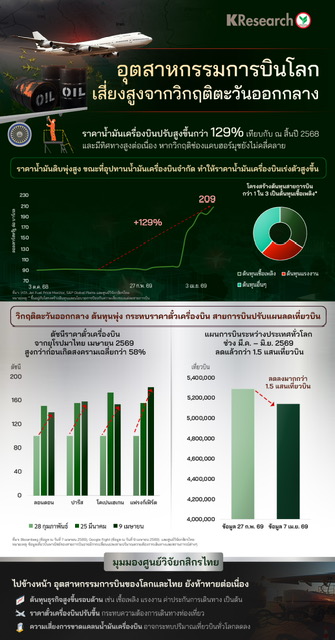 นอกจากนี้ หากวิกฤติฮอร์มุซยังไม่คลี่คลาย ความเสี่ยงการขาดแคลนน้ำมันเครื่องบินในบางประเทศสูงขึ้น อาจกระทบปริมาณเที่ยวบินทั่วโลกลดลงเพิ่มขึ้น ซึ่งไม่เป็นผลดีต่อธุรกิจการบิน