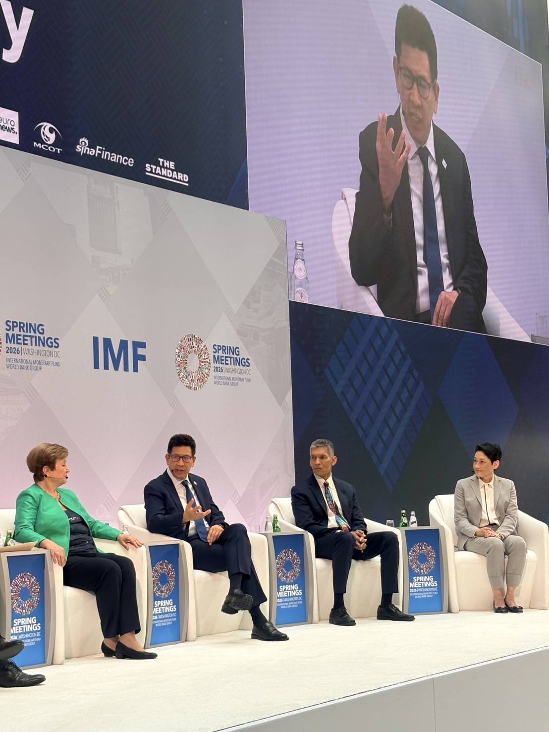 ดร.เอกนิติ นิติทัณฑ์ประภาศ รองนายกรัฐมนตรีและรัฐมนตรีว่าการกระทรวงการคลัง ร่วมเสวนาเศรษฐกิจโลก “The Debate on the Global Economy” พร้อมกับ (1) Dr. Kristalina Georgieva กรรมการจัดการกองทุนการเงินระหว่างประเทศ (2) นาย Mohammed Al-Jadaan รัฐมนตรีว่าการกระทรวงการคลังซาอุดีอาระเบีย (3) นาย François Villeroy ผู้ว่าการธนาคารกลางฝรั่งเศส (4) Dr. Eswar Prasad ศาสตราจารย์อาวุโสด้านนโยบายการค้าและเศรษฐศาสตร์ Cornell University และ (5) นาง Martina Cheung ประธาน ประธานเจ้าหน้าที่บริหาร และคณะกรรมการบริษัท S&P Global ซึ่งเป็นเวทีหลัก (flagship) ในการประชุมสภาผู้ว่าการธนาคารโลกและกองทุนการเงินระหว่างประเทศ (Spring Meetings) ปี 2569 ณ กรุงวอชิงตัน ดี.ซี. สหรัฐอเมริกา เมื่อวันที่ 16 เมษายน 2569