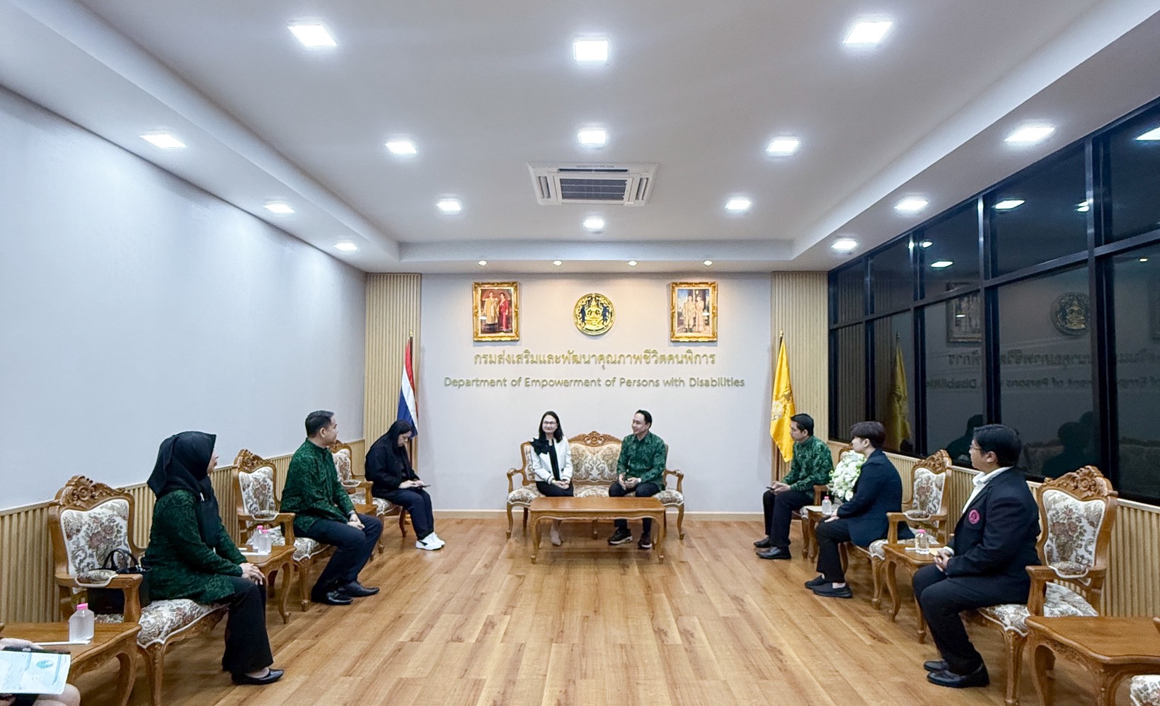 เช้าวันนี้ 23 เมษายน 2569 ธนาคารอิสลามแห่งประเทศไทย (ไอแบงก์) โดยนายกูยไวนี สตอหลง ผู้อำนวยการฝ่าย ฝ่ายสื่อสารและภาพลักษณ์องค์กร ปฏิบัติหน้าที่ผู้อำนวยการสำนัก สำนักป้องกันการทุจริต พร้อมคณะ ร่วมแสดงความยินดี นางสาวสนธยา บุณยภูษิต อธิบดีกรมส่งเสริมและพัฒนาคุณภาพชีวิตคนพิการ เนื่องในโอกาสได้รับการแต่งตั้งให้ดำรงตำแหน่งอธิบตีกรมส่งเสริมและพัฒนาคุณภาพชีวิตคนพิการ พร้อมหารือประเด็นการจ้างงานคนพิการ ตามพระราชบัญญัติส่งเสริมและพัฒนาคุณภาพชีวิตคนพิการ พ.ศ. 2550 (และที่แก้ไขเพิ่มเติม) มาตรา 33 และการให้พื้นที่สัมปทานคนพิการตามมาตรา 35 เพื่อเสริมสร้างโอกาสการจ้างงานและการประกอบอาชีพของคนพิการ โดยมีผู้บริหารและเจ้าหน้าที่กองกองทุนและส่งเสริมความเสมอภาคคนพิการ ที่เกี่ยวข้องร่วมให้การต้อนรับและหารือ ณ ห้องรับรองอธิบดี ชั้น 3 กรมส่งเสริมและพัฒนาคุณภาพชีวิตคนพิการ