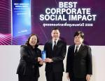 นางลภาวรรณ จันทร์กระจ่าง รองผู้อำนวยการธนาคารออมสิน รักษาการแทนผู้อำนวยการธนาคารออมสิน เป็นผู้แทนธนาคารรับรางวัลเกียรติยศ Best Corporate Social Impact 2025 สุดยอดองค์กรเพื่อชุมชนแห่งปี 2568 จาก นายวิทัย รัตนากร ผู้ว่าการธนาคารแห่งประเทศไทย ประธานในพิธีมอบรางวัล