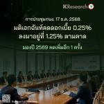 เฟดลดดอกเบี้ยตามคาด แต่ทิศทางปีหน้ายังคงไม่ชัดเจน ในการประชุมวันที่ 9-10 ธันวาคม ธนาคารกลางสหรัฐฯ (เฟด) มีมติ 9 ต่อ 3 เสียง ให้ปรับลดอัตราดอกเบี้ยนโยบายลง 0.25% สู่ระดับ 3.50-3.75% พร้อมประกาศว่าจะกลับมาซื้อพันธบัตรรัฐบาลสหรัฐอีกครั้ง ตั้งแต่วันที่ 12 ธันวาคม